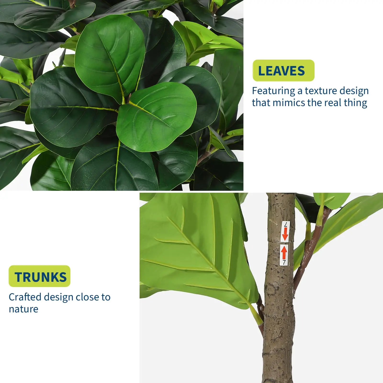 · Premium & Durable Materials: Designed to last with premium materials, this ficus lyrata fake plant with pot features UV-resistant silk leaves that never fade, along with a sturdy trunk and weighted base that prevent tipping (making it completely child and pet safe). Even placed near sunny windows, this low maintenance floor tree maintains its vibrant, lifelike colors year after year without any care.