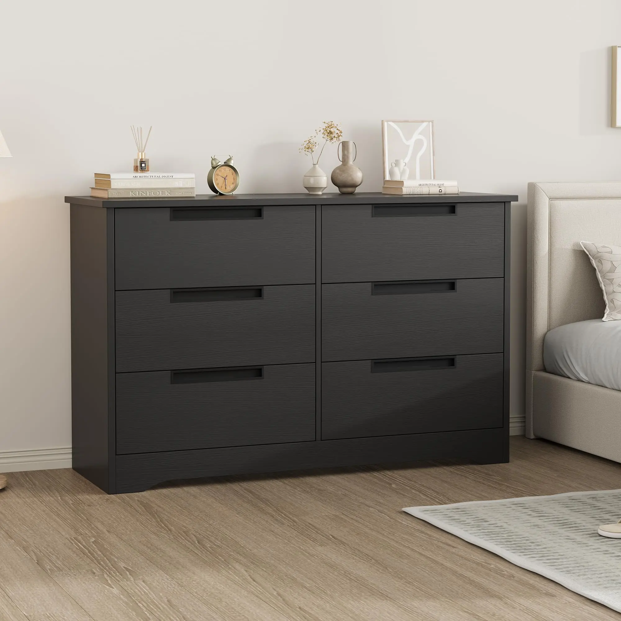 · MODERN STYLE DRESSERS - With its modern aesthetics and embedded handles, this 6 drawer dresser brings a touch of elegance to your home, perfectly matches most room decor style. It's a favored choice for individuals and families looking for a modern, fashion style. More than just a furniture, our dresser is also a stunning decor piece that adds a unique charm to your living space