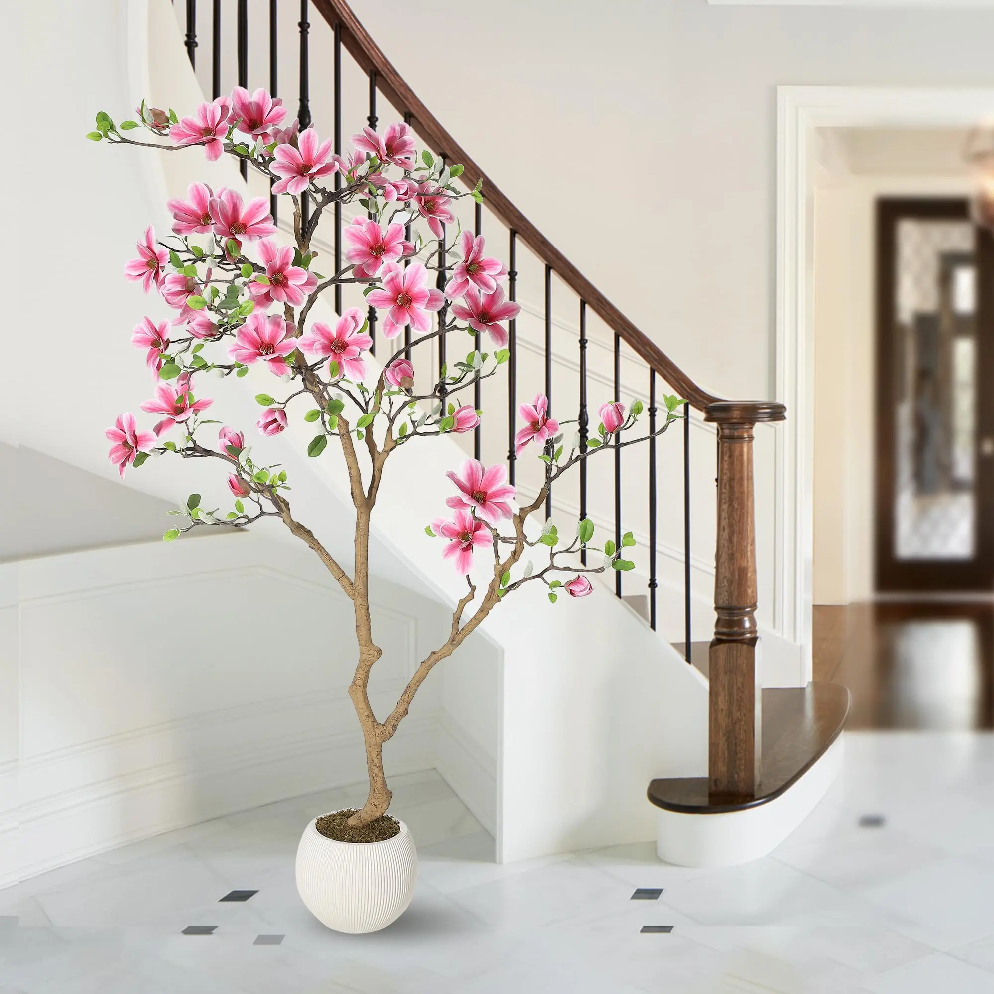 · ✅ REALISTIC ELEGANCE – This lifelike magnolia tree features detailed leaves and soft pink blooms, adding natural beauty to any space without the need for water or sunlight.