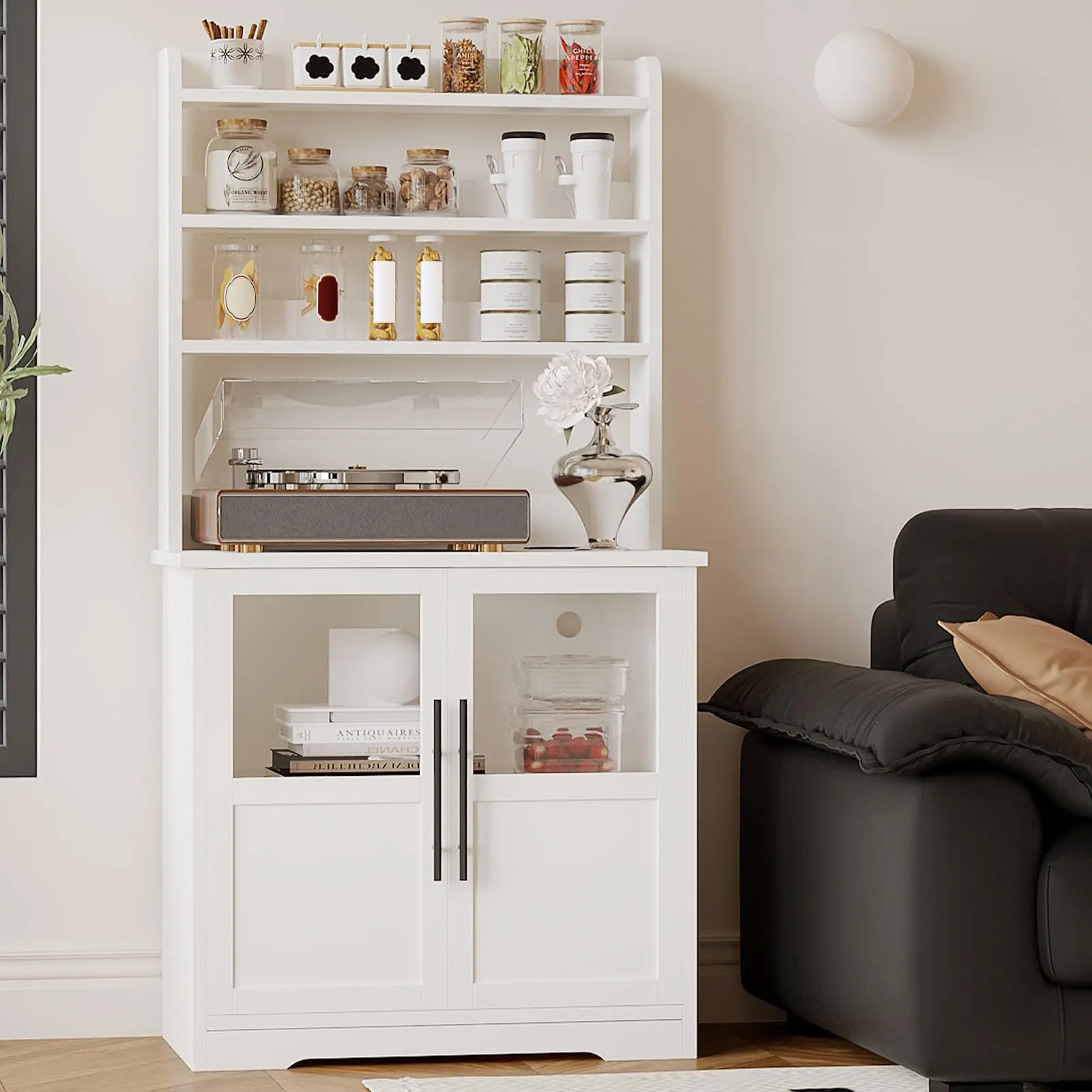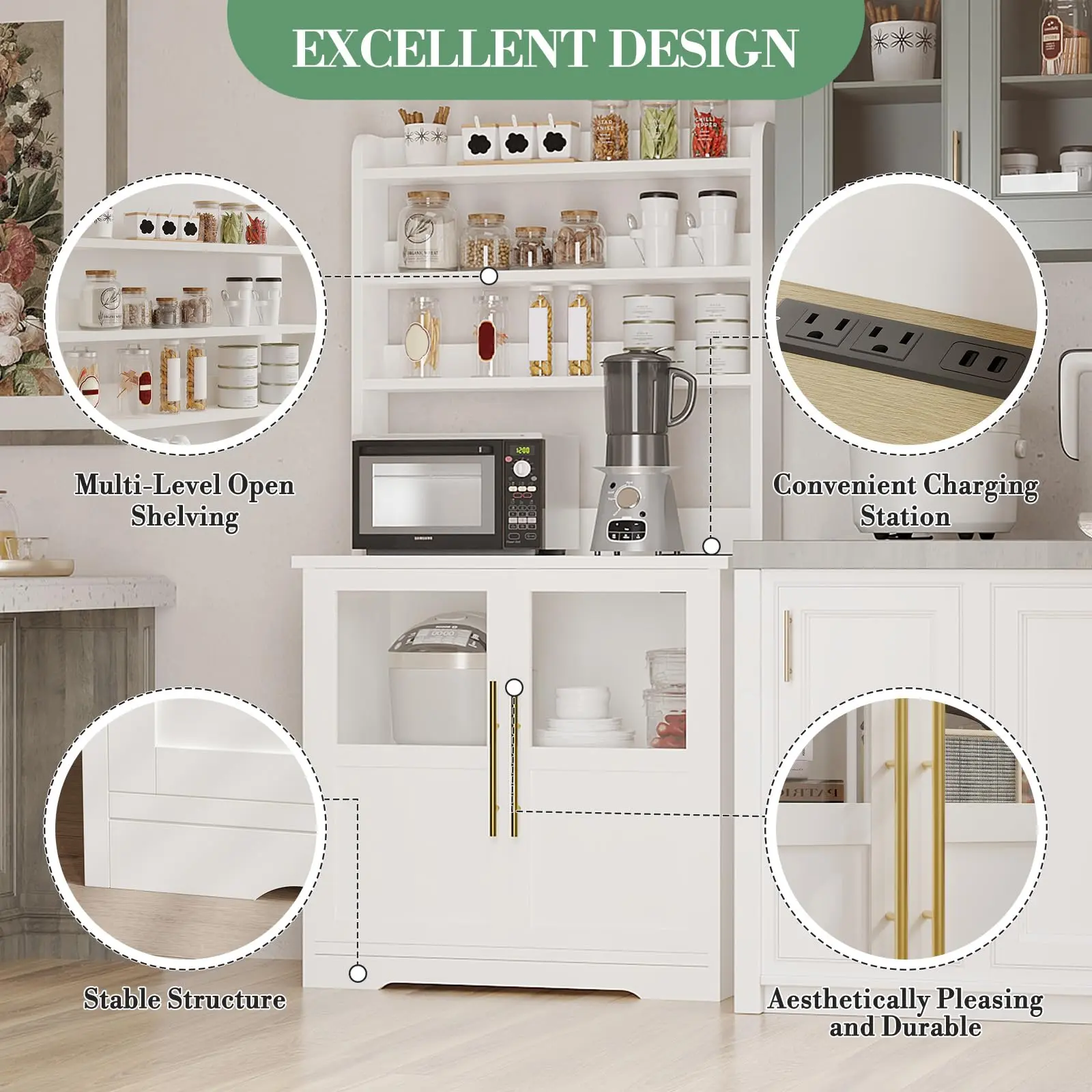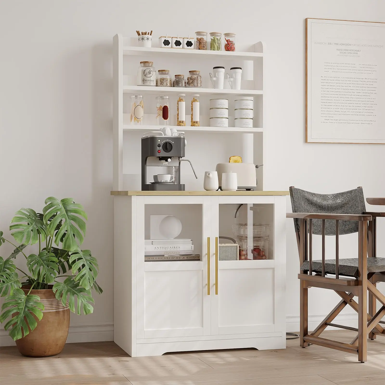 · Robust Structure: Built for reliability, this hutch cabinet features a sturdy design that supports up to 150 lbs on the tabletop. The low bottom height enhances stability, making it a safe choice for your kitchen essentials, even in busy environments