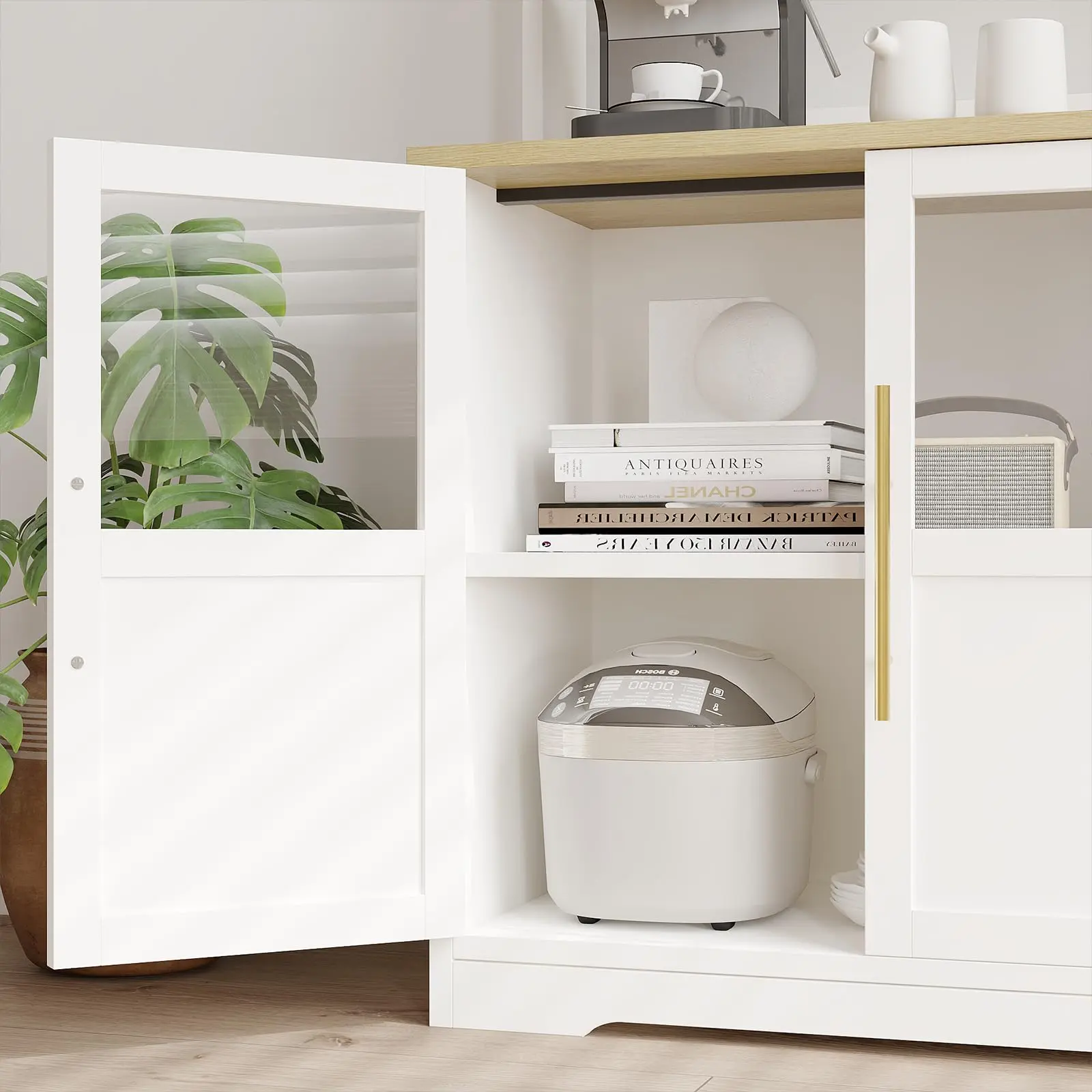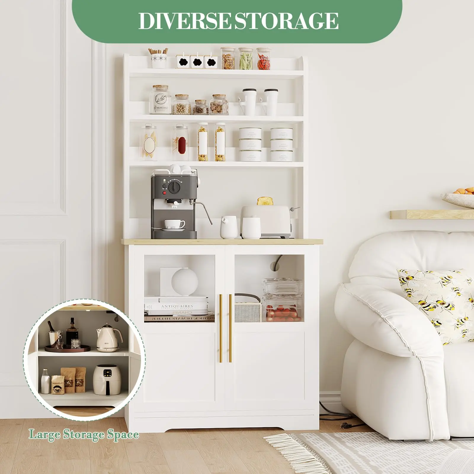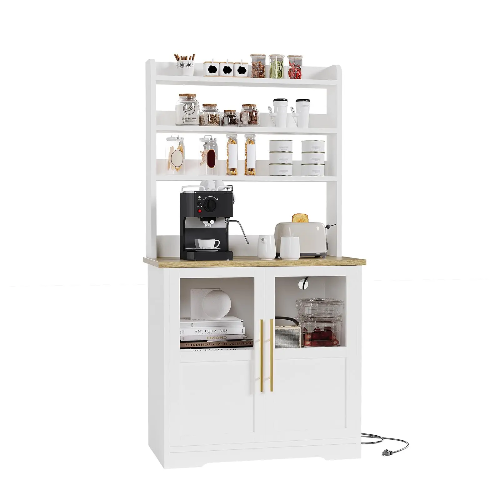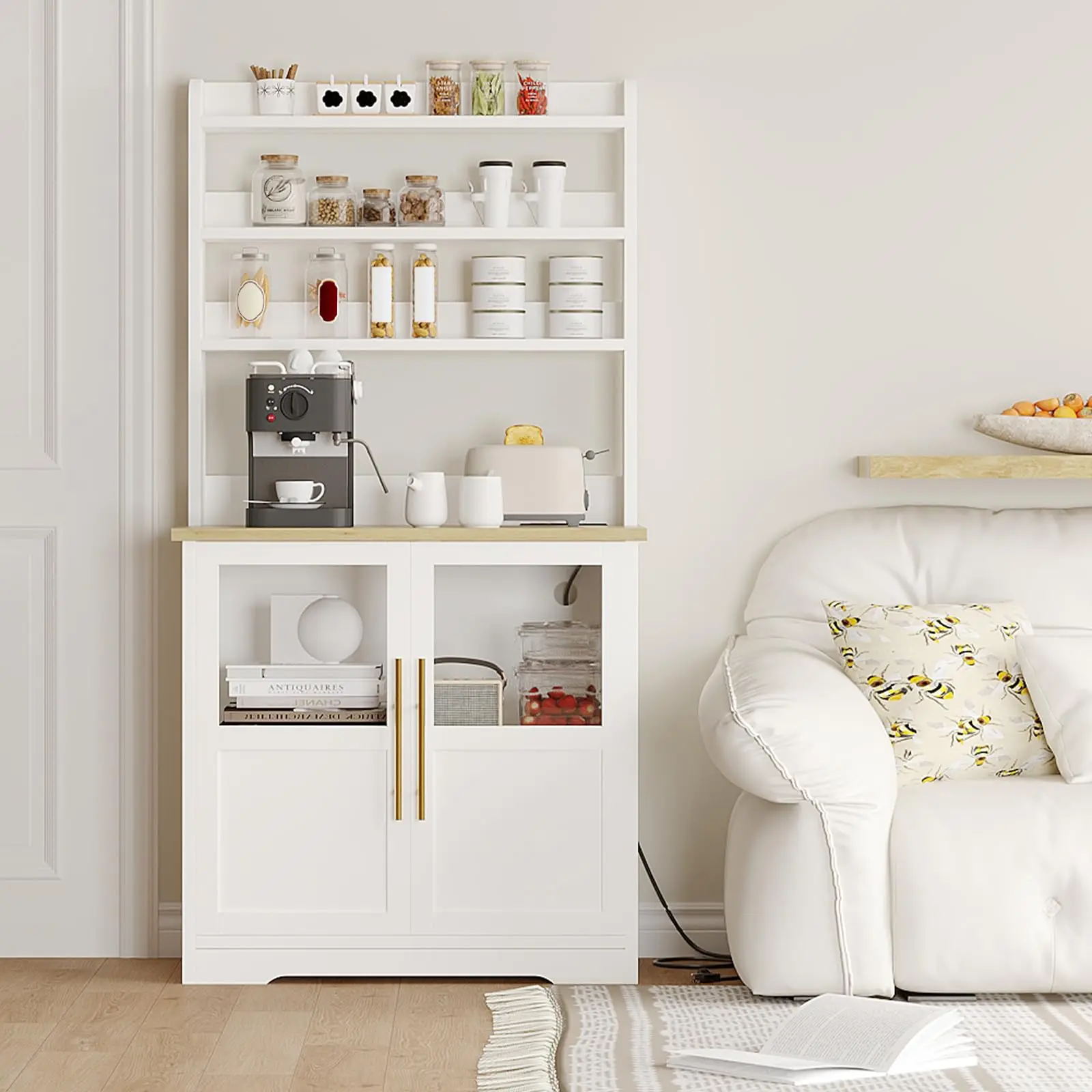· Robust Structure: Built for reliability, this hutch cabinet features a sturdy design that supports up to 150 lbs on the tabletop. The low bottom height enhances stability, making it a safe choice for your kitchen essentials, even in busy environments