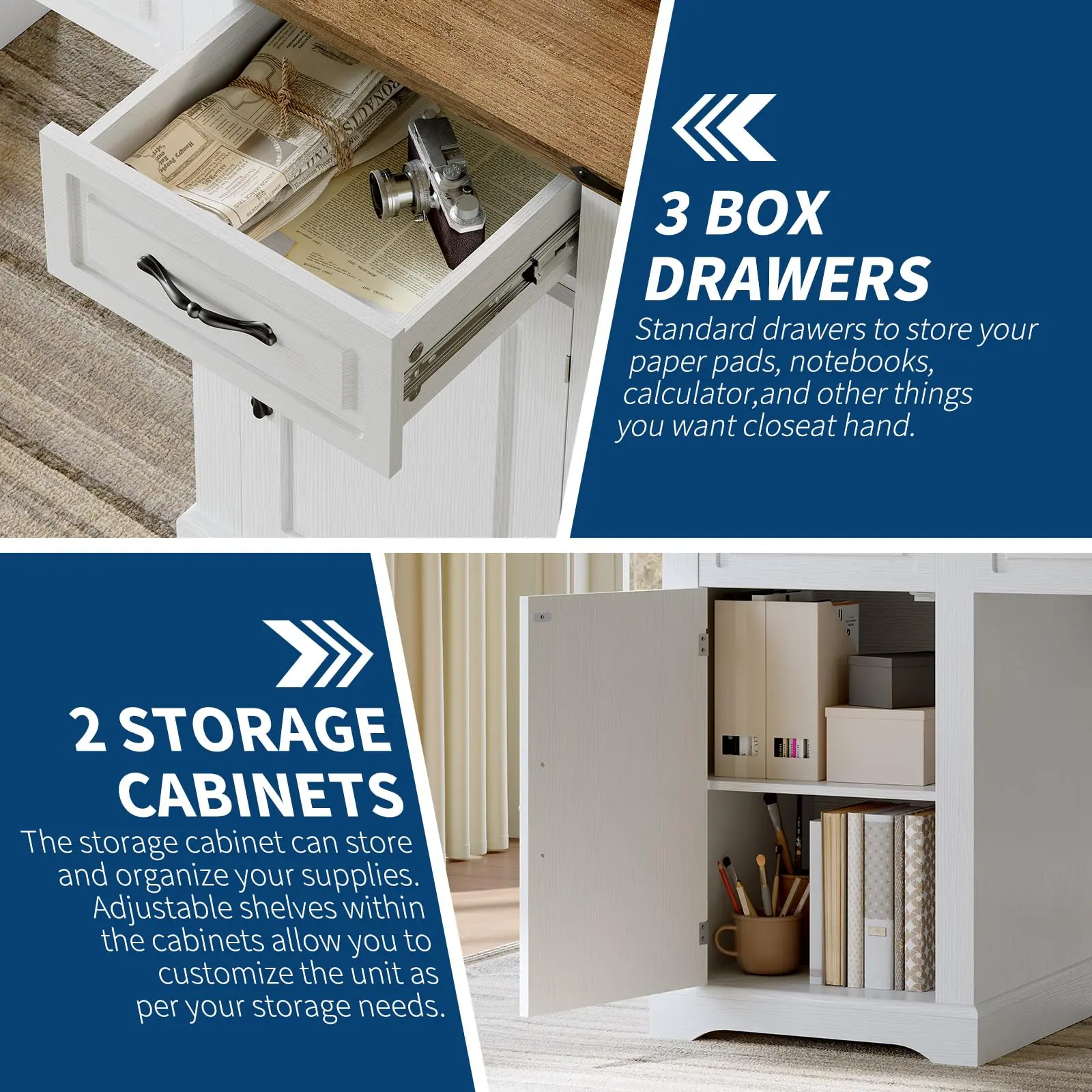· 【Ample Storage Space】-- Keep your office organized with 3 utility drawers for paper pads, notebooks, calculator, and other things you want close at hand. 2 storage cabinets with an adjustable shelf for items of various sizes. Its generous layout not only improves work efficiency but also keeps your workspace neat and uncluttered.
