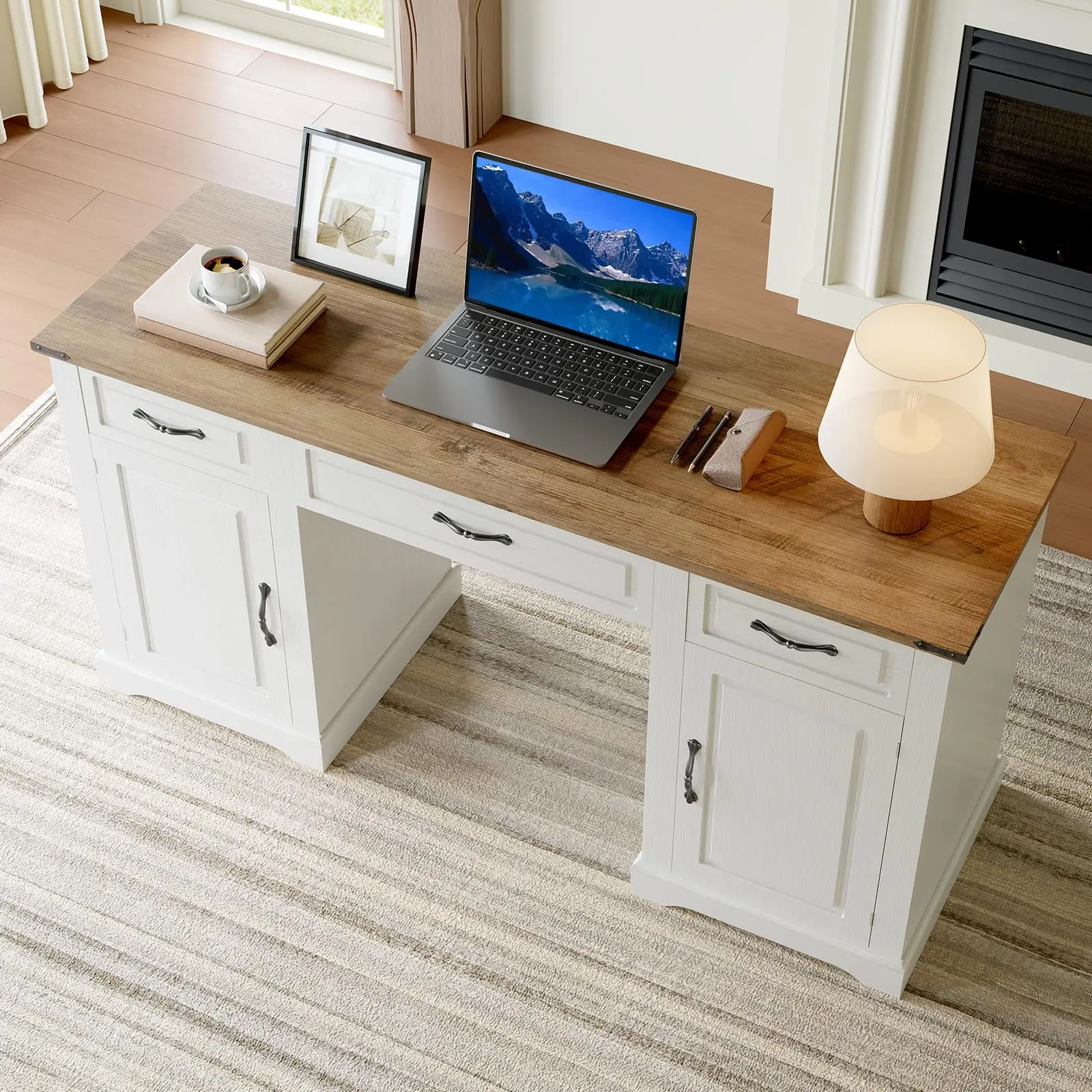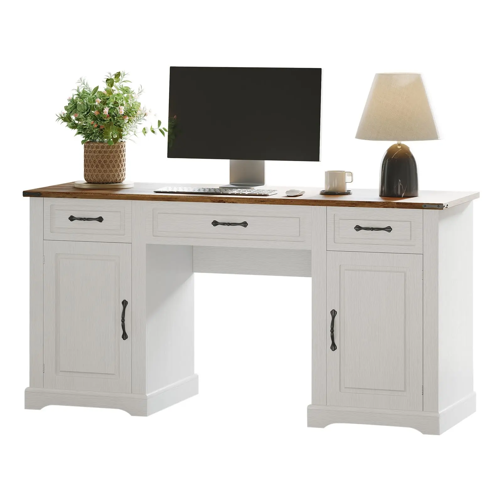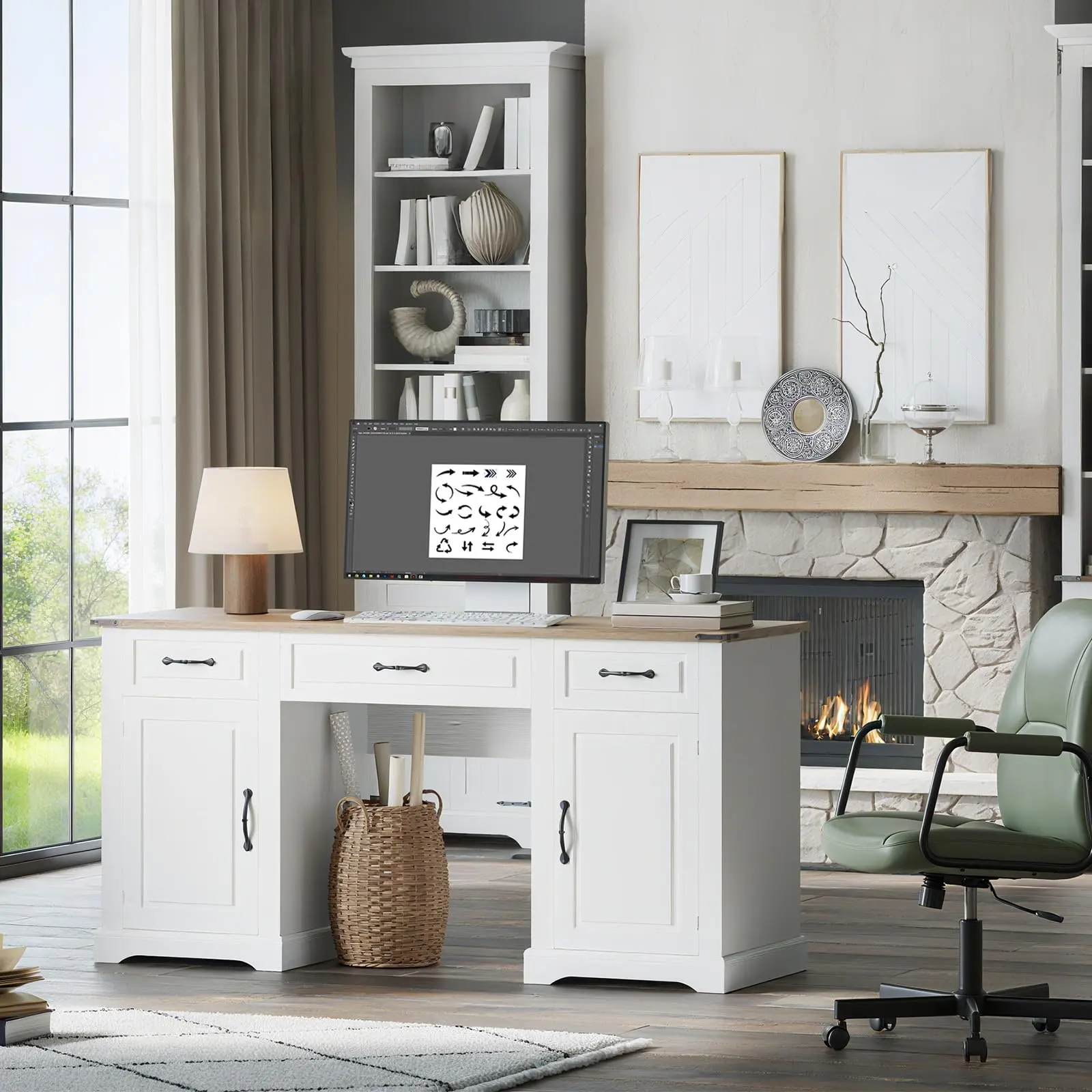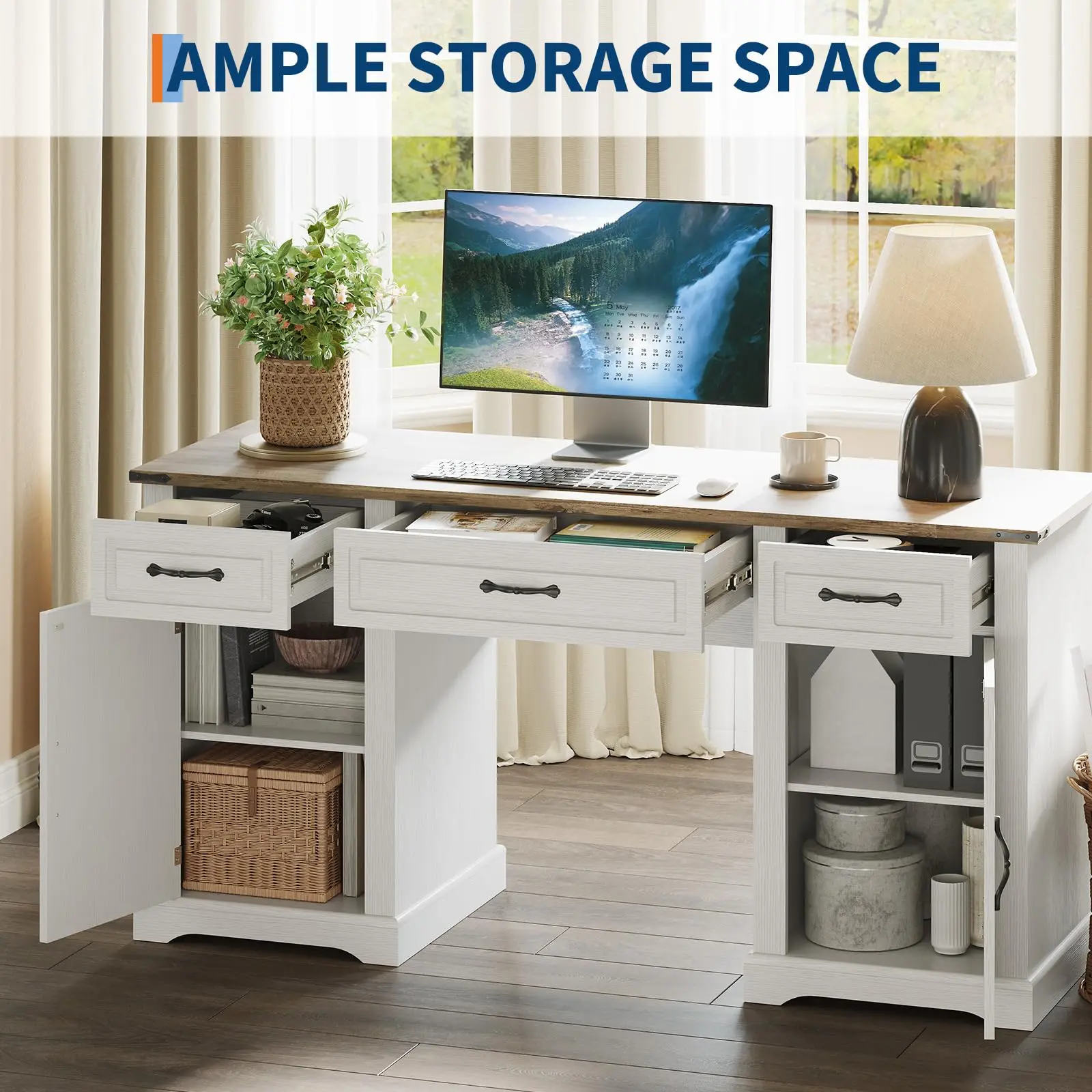 · 【Classic Farmhouse Design】--Elevate your home office with this 60" executive desk featuring vintage farmhouse style, embossed textures, and hand-rubbed burnished hardware that combines charm and practicality. The sleek design and versatile functionality make this desk a perfect addition to any home office or study.