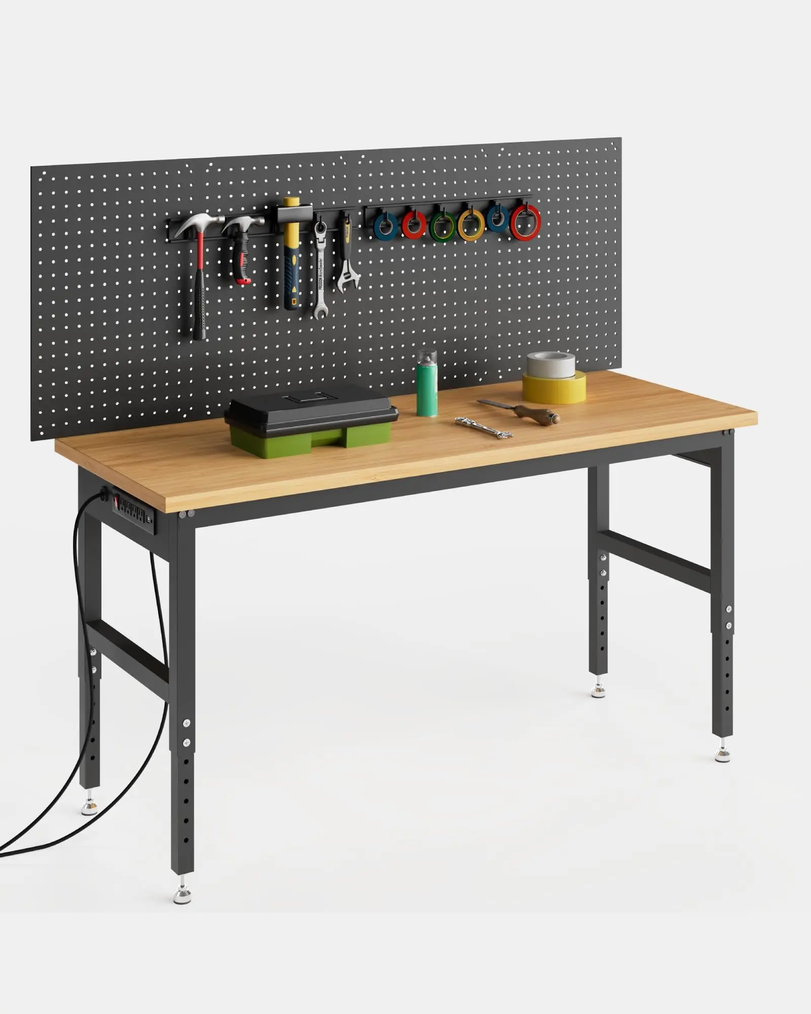 · Heavy-Duty 2200lbs Capacity Design: Engineered to withstand professional demands, this 60-inch workbench delivers a massive 2200lbs load capacity – strong enough to support multiple car engines, stacks of lumber, or industrial toolboxes. The reinforced steel frame with crossbar joints ensures zero sagging under heavy weights, while the 60"x24" solid wood surface provides ample space for large projects. Ideal for mechanics needing to stabilize transmissions during repairs or woodworkers assemblin