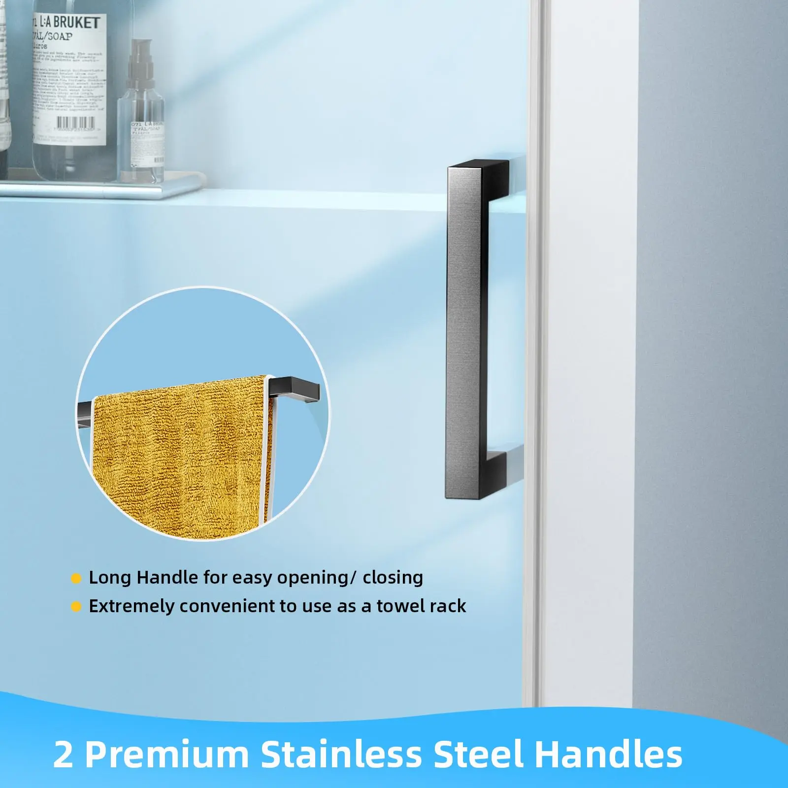 GARVEE 56"-60"W x 75"H Frameless Shower Door, Sliding Shower Door with 5/16"(8mm) Clear Tempered Glass, Noiseless Shatterproof Shower Door with Square Rail, Stainless Steel Hardware, Matte Black