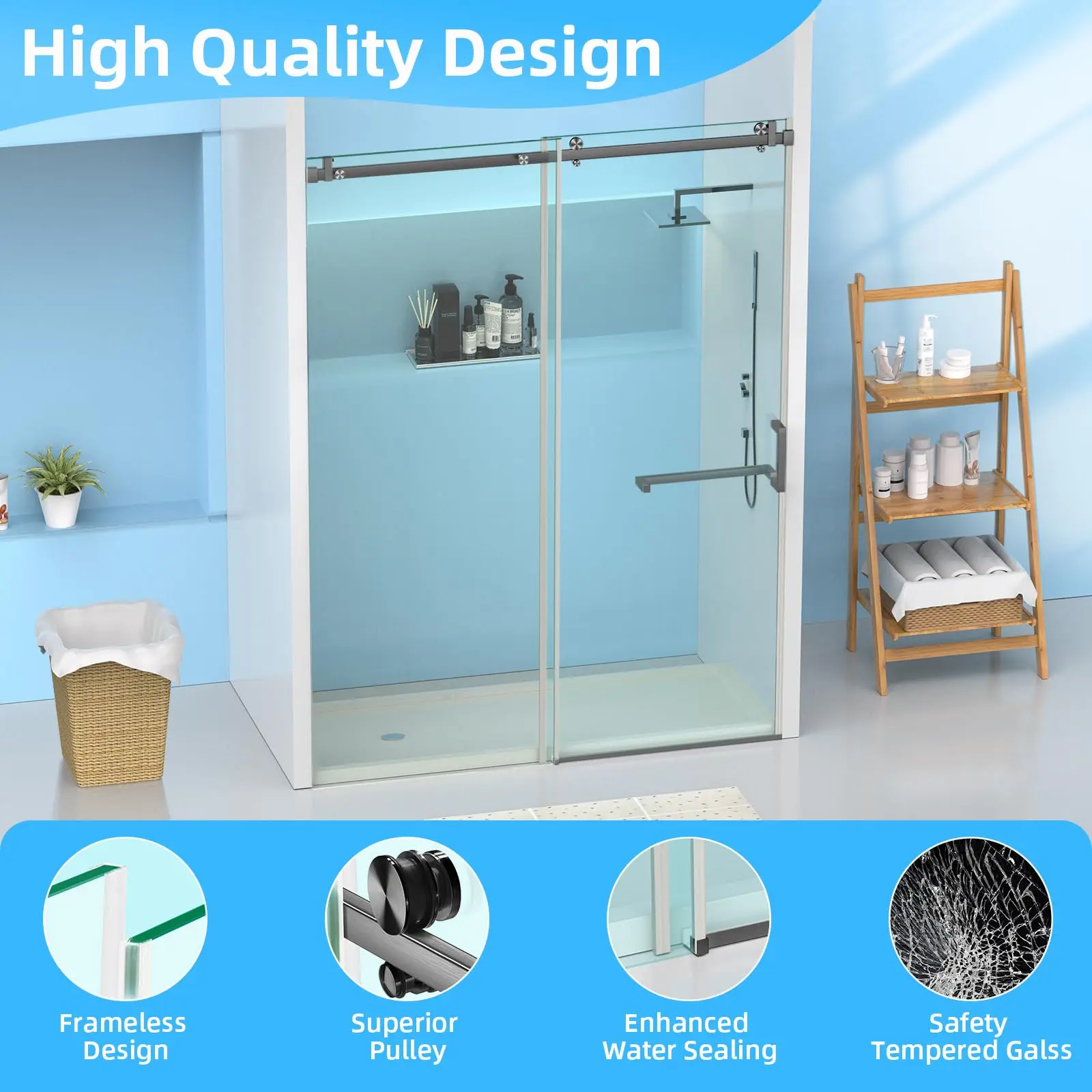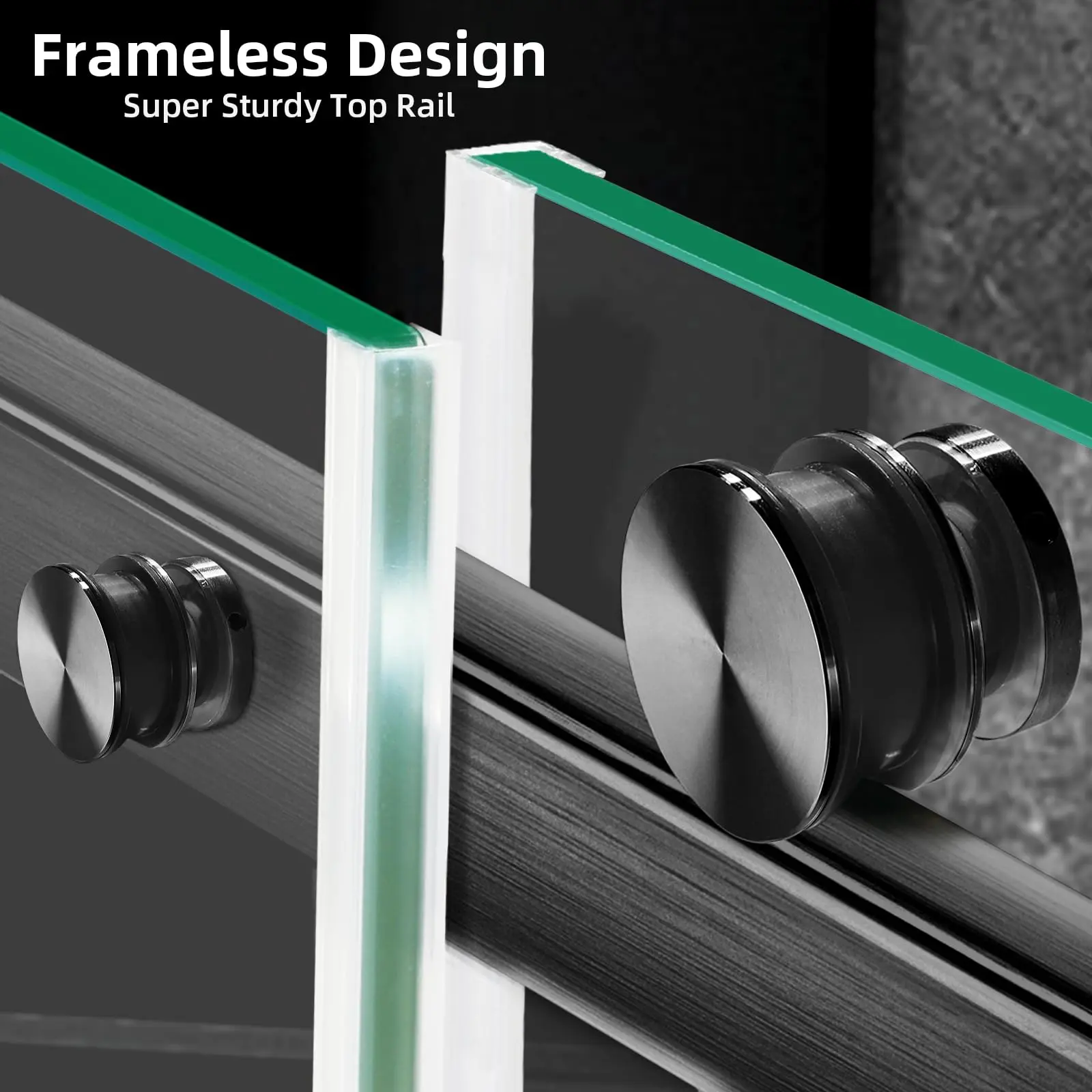 5. GARVEE 56"-60"W x 75"H Frameless Shower Door, Sliding Shower Door with 5/16"(8mm) Clear Tempered Glass, Noiseless Shatterproof Shower Door with Square Rail, Stainless Steel Hardware, Matte Black