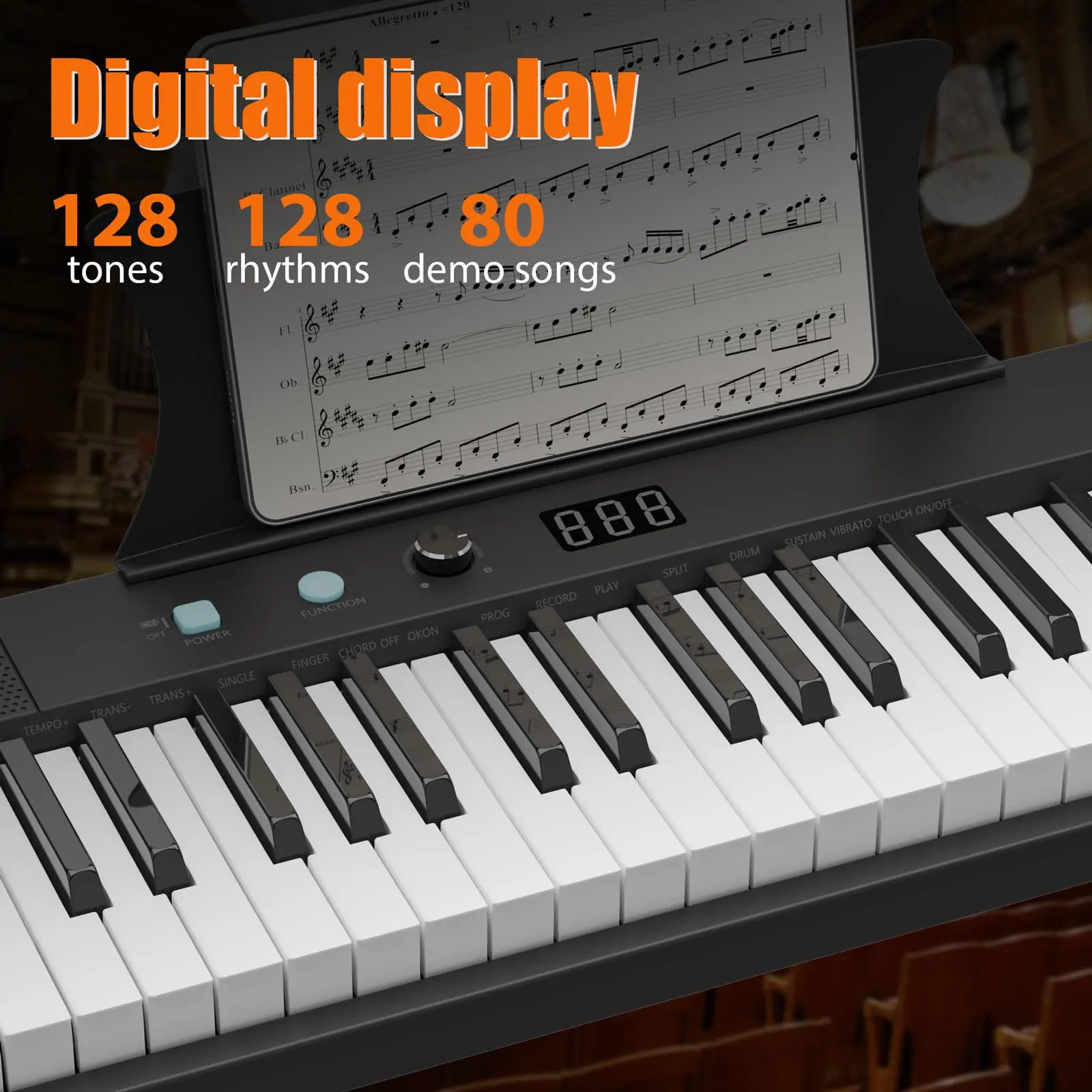 Unlock your musical potential with our portable electric keyboard piano, featuring semi-weighted keys, built-in speakers, and a digital display. Perfect for beginners and professionals alike, this versatile instrument is designed to inspire and elevate your musical journey.