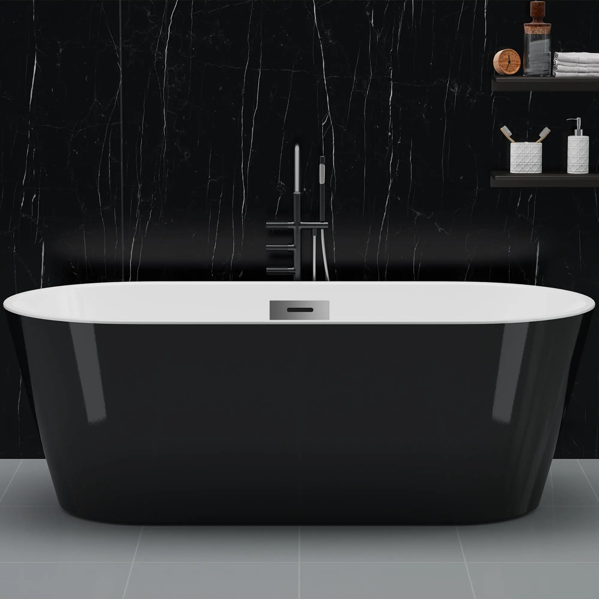 Garvee 1 set of freestanding bathtub 6117, freestanding bathtub, 59 inch white inside and black outside, chrome-plated overflow cover, cUPC drain, 1500*750*580