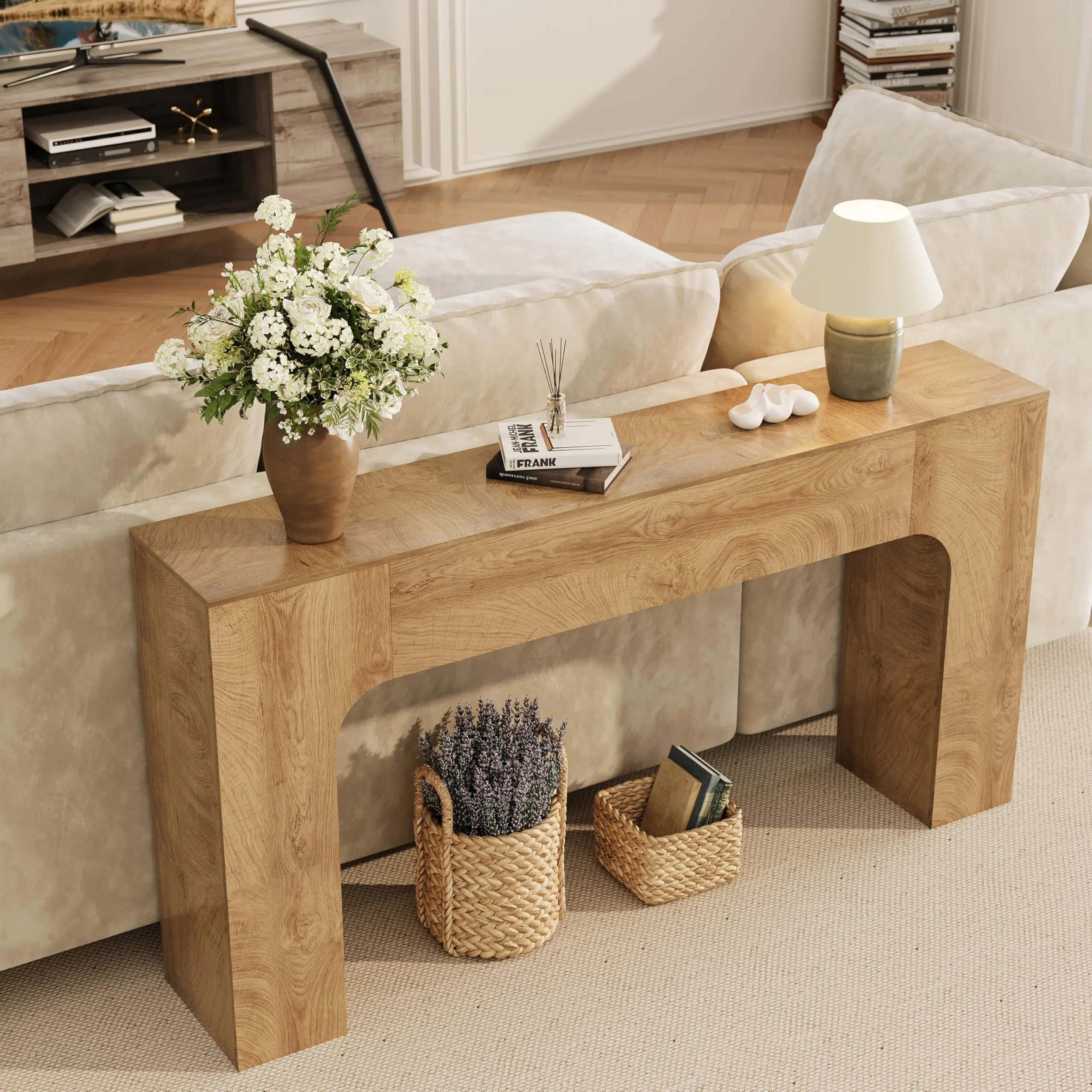 · Multi-Functional Display Solution: Use this hallway table as a behind couch table, entrance table, or foyer table to organize keys, mail, or display accents. Its versatile design keeps your living room or hallway clutter-free and always looking put-together
