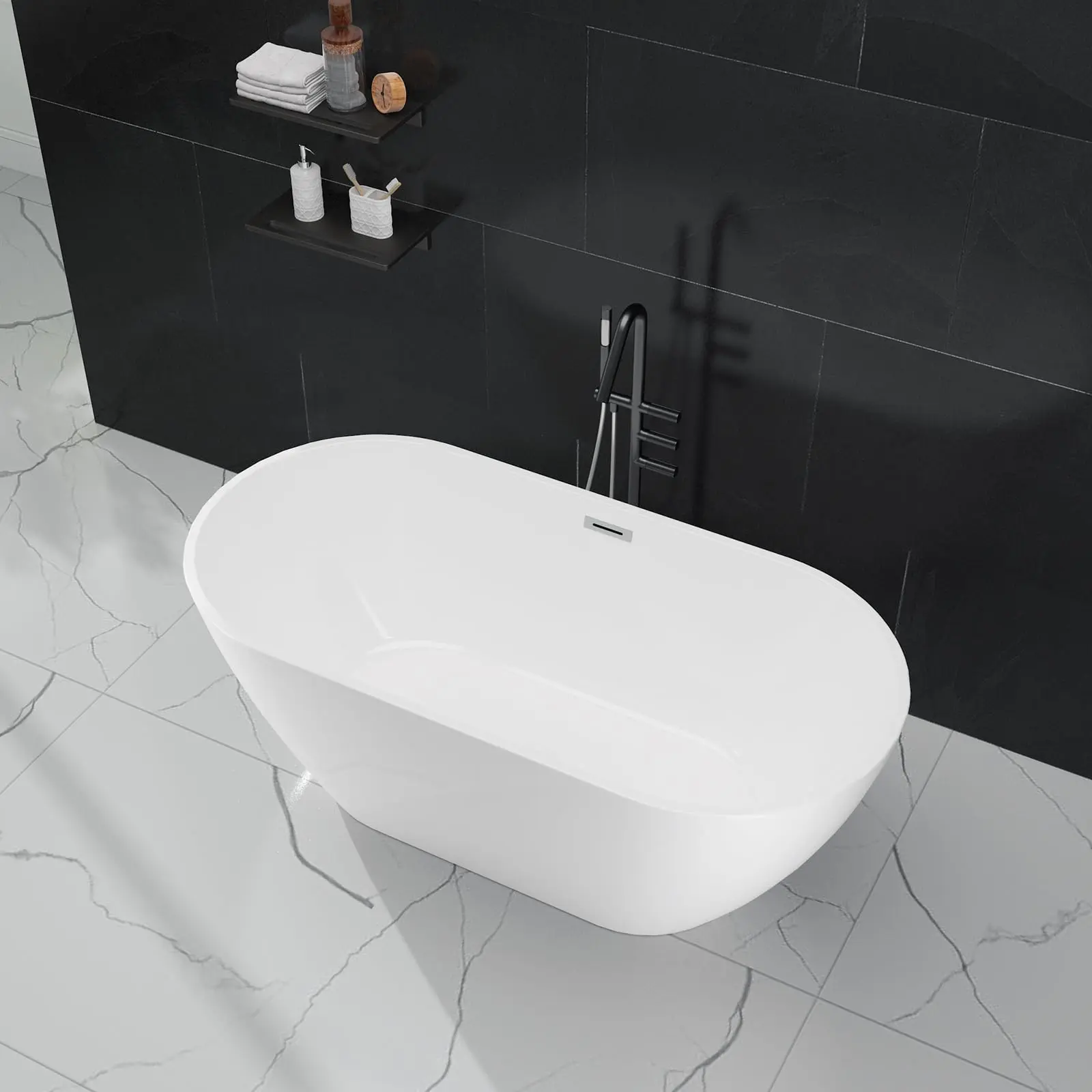 · Sleek Freestanding Design: Acrylic bathtub elevates modern bathrooms with its clean, freestanding silhouette. Its contemporary curves and glossy finish create a striking focal point, while the absence of built-in constraints allows flexible placement near windows, walls, or room centers.