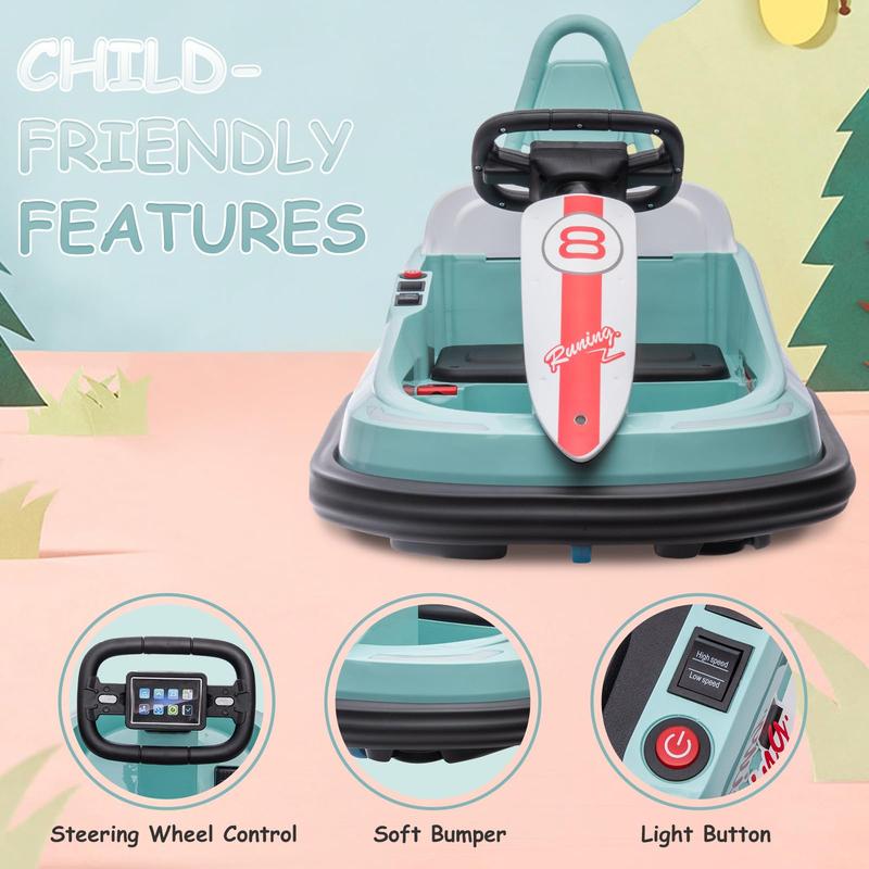· 【Funny Ride on Toy】Our Kids Bumper Car comes with built-in music and Bluetooth mode, so your kids can enjoy their favorite tunes while cruising around. The bumper car is equipped with 5 LED light modes also makes your child's driving process more cool and interesting.