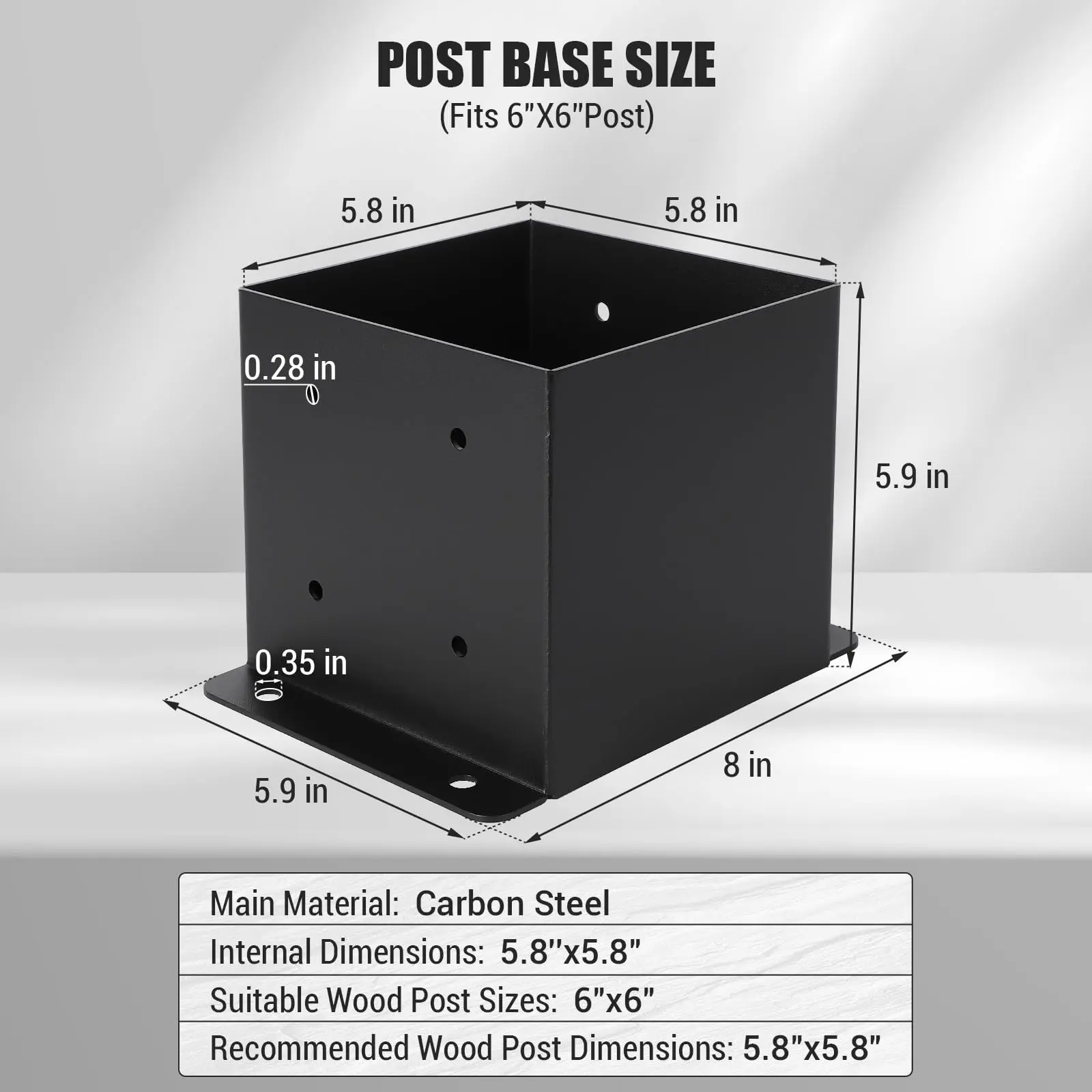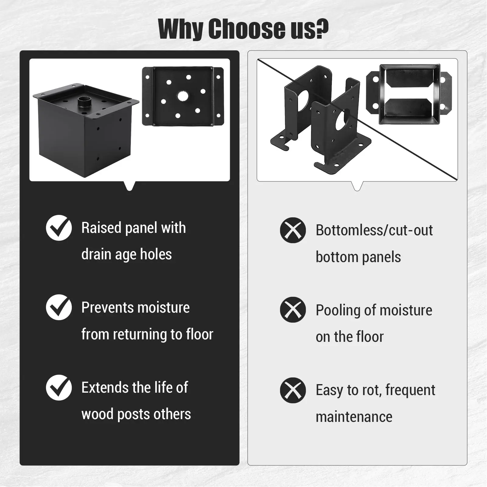 · Stable Interior Base Design: The 6x6 post bracket includes an interior base that elevates the wood post above the ground, reducing contact with moisture and improving drainage. This structure helps maintain the stability of your post and prevents tilting or wobbling over time.