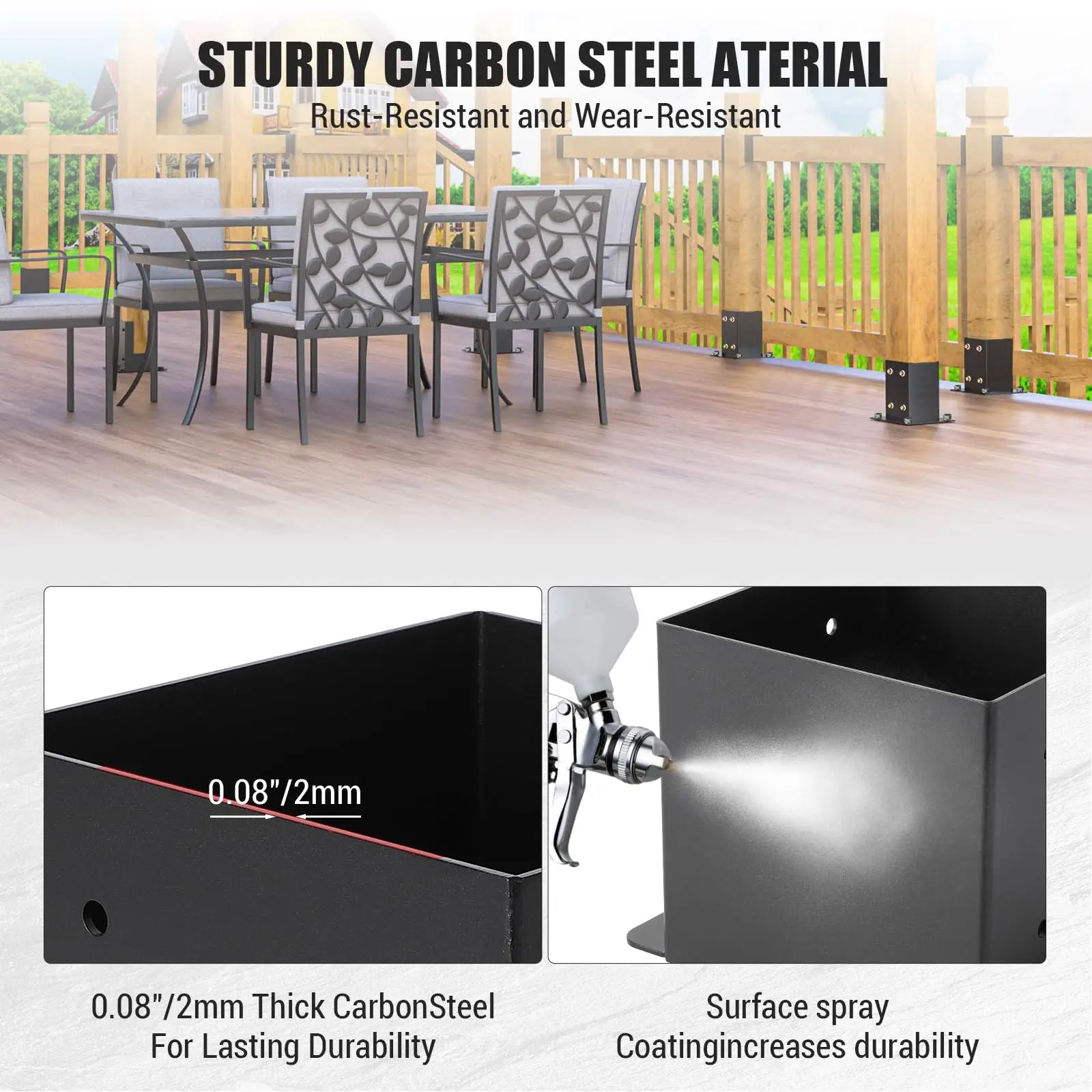 · Durable Powder-Coated Construction: Crafted from sturdy carbon steel, each post base features a powder-coated finish that helps resist rust, moisture, and outdoor wear. Ideal for long-term use in decks, pergolas, fences, and other wood structures exposed to the elements.
