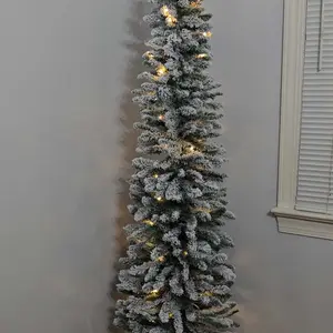 · Realistic Snow Flocked Leaves: Crafted with high-quality PVC needles, this snow flocked Christmas tree features lifelike snowy tips that won’t shed or fade. The dense, flocked pencil Christmas tree prelit-style (optional lighting) create a magical snowy Christmas tree effect for a cozy winter wonderland.