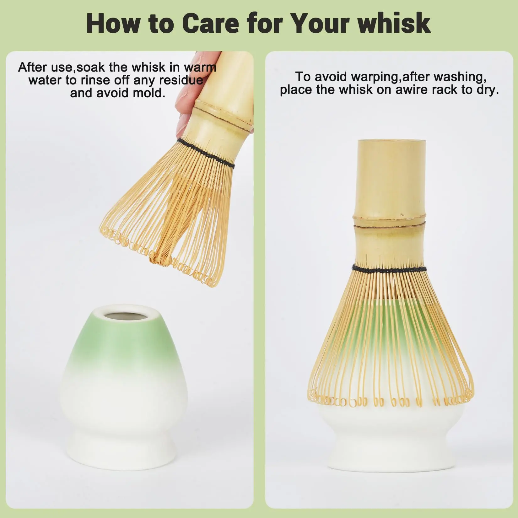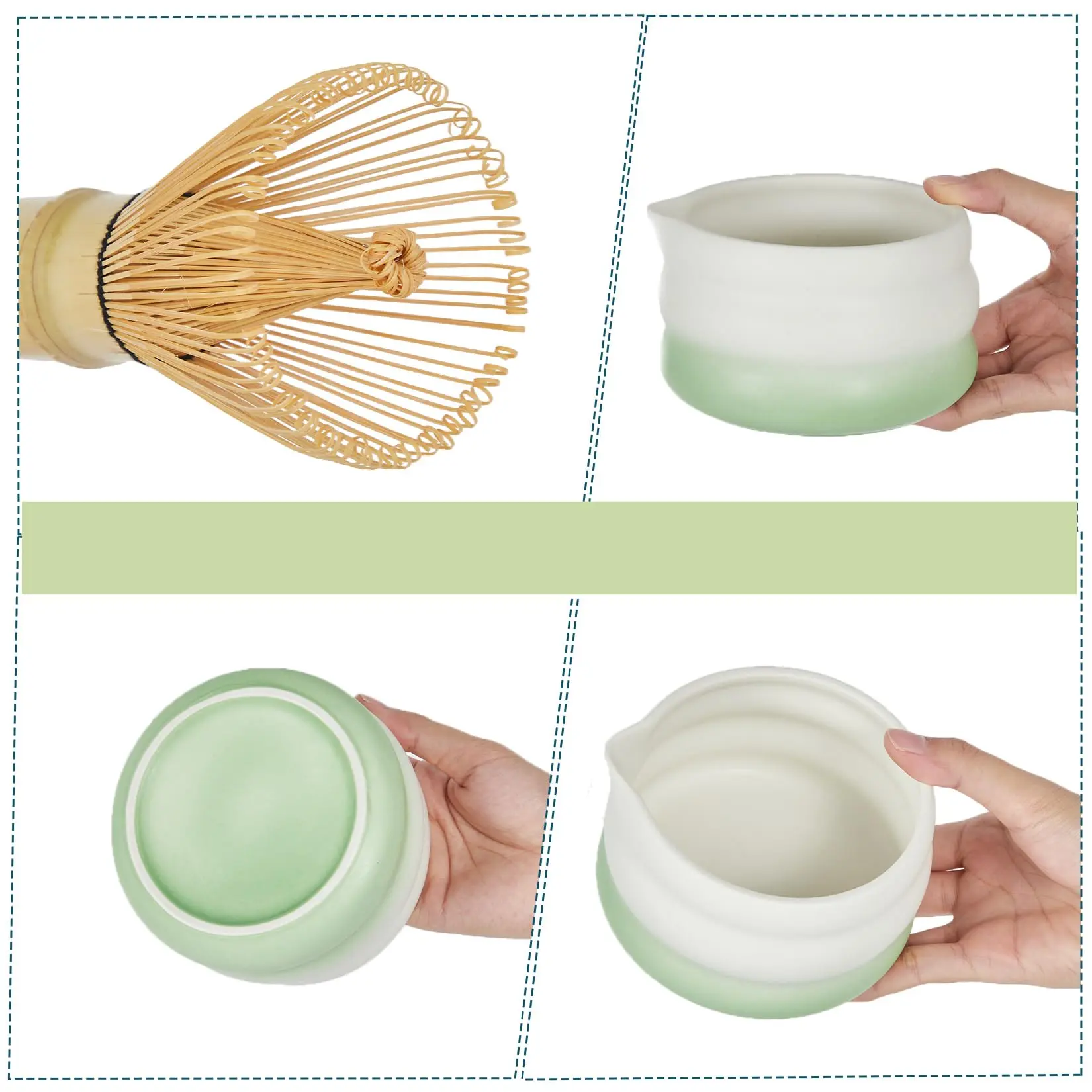 · Unique Transmutation Green Design: The ceramic matcha bowl & whisk holder features a stunning transmutation green color, blending traditional elegance with modern aesthetics. It's a matcha set that stands out for both its look and function