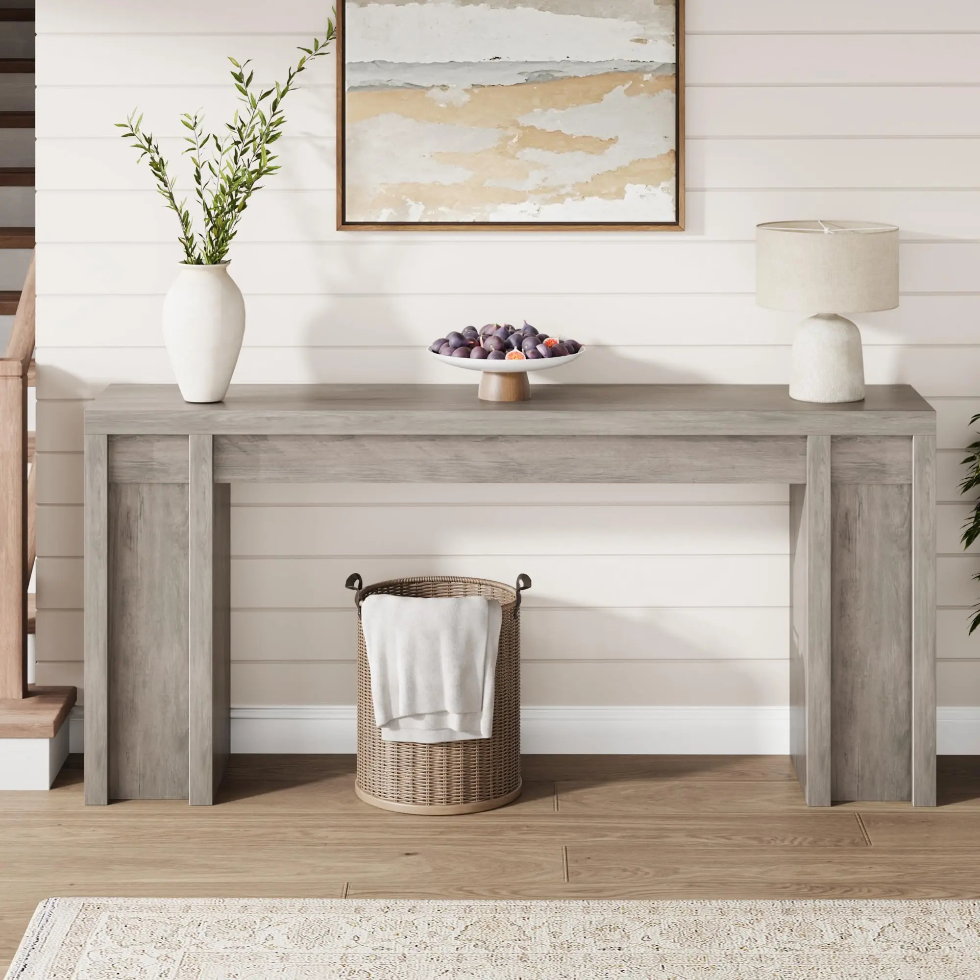 · Ideal Proportions:With its ideal dimensions of 70.8"W x 11.8"D x 31.5"H, our entry table boasts a grand yet refined presence that elevates any entryway.Its sturdy legs (10"W x 11.8"D) ensure exceptional stability, making it both a functional entry way table and a stylish home decor.