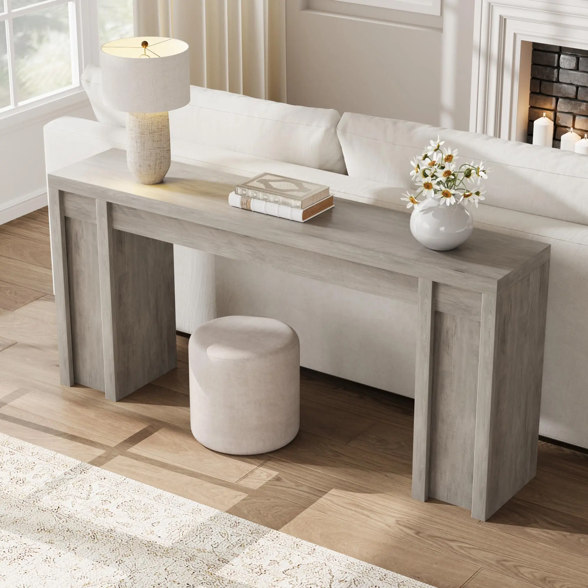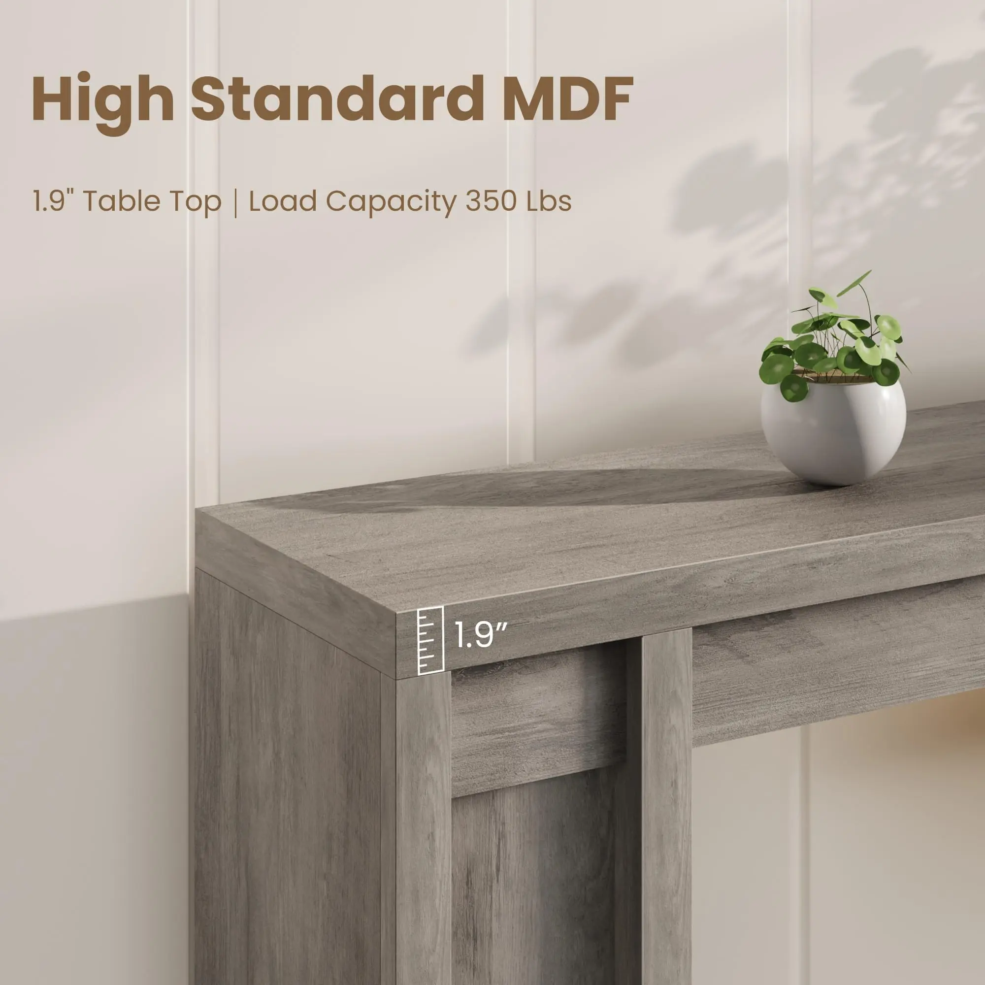 · Thickened Tabletop:This sturdy sofa table features a 1.9-inch thick MDF top rated for 350 lbs, ideal as a couch table behind your sofa for ample storage and display.
