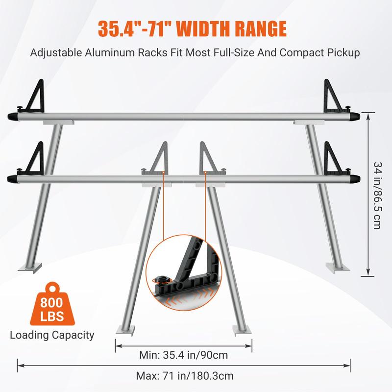 · BUILT TOUGH AND STEADY: The support you deserve is here! Our ladder rack for trucks is constructed from outstanding aluminum material, making it lightweight and durable. And the base brackets are made of heavy-duty steel for enhanced stability in loading bulky items.