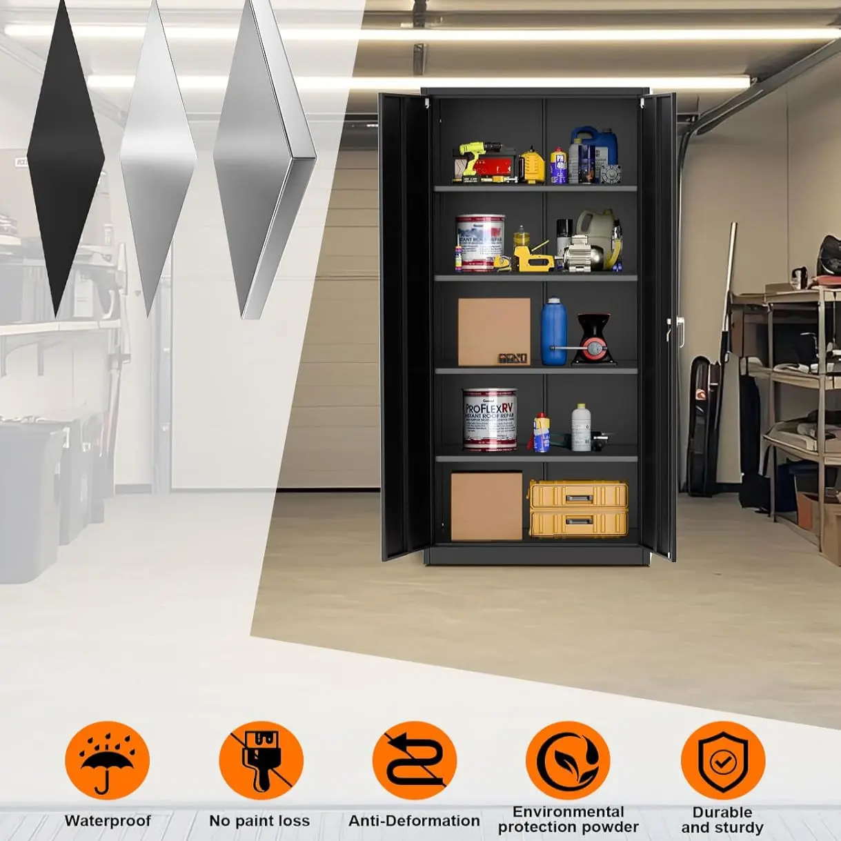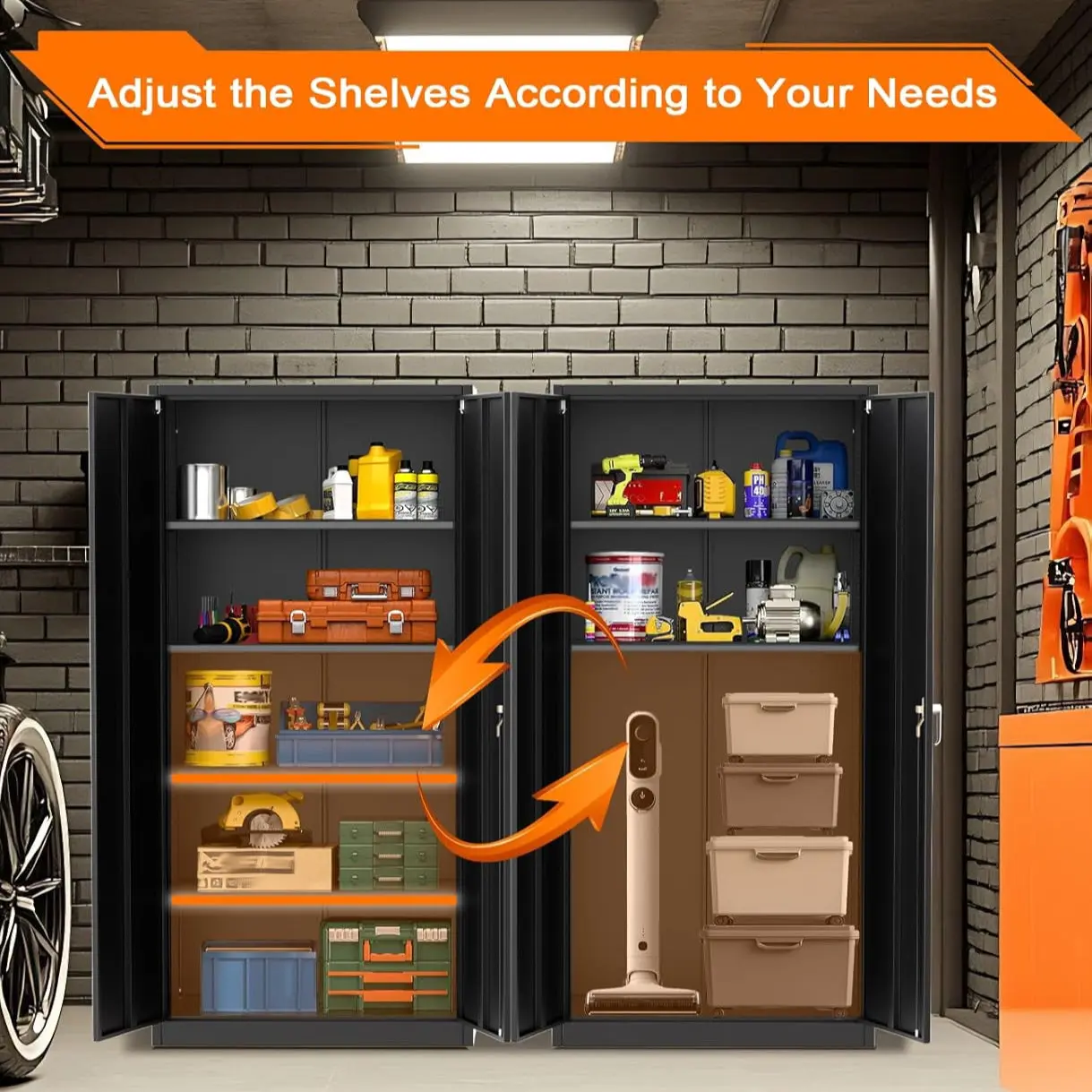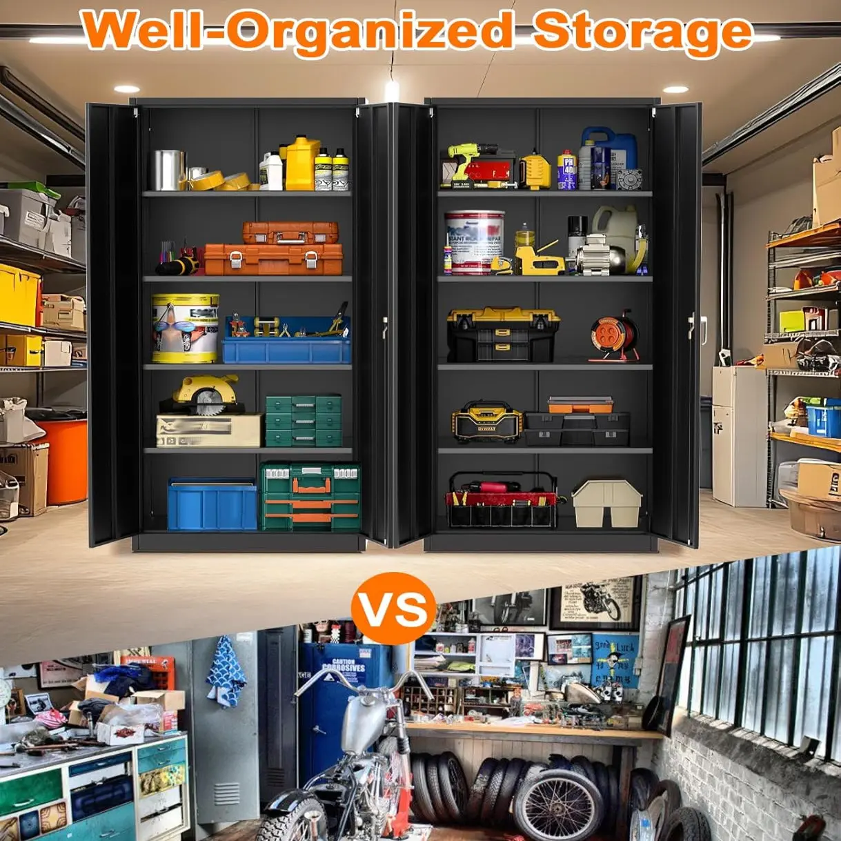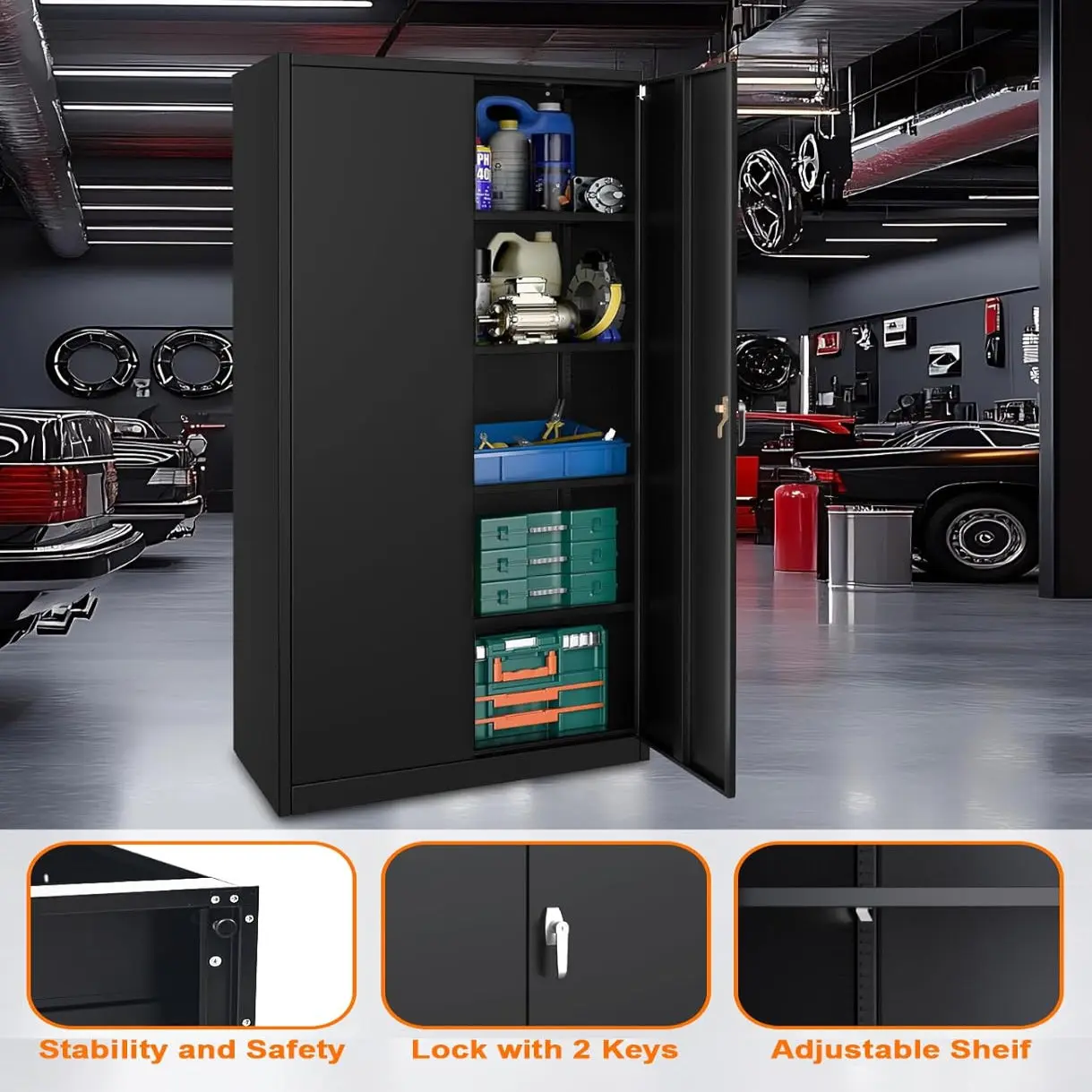 ✅ Secure Lockable Design : Dual-key locking doors safeguard tools, chemicals, or valuables from unauthorized access—ideal for childproofing garages or homes.