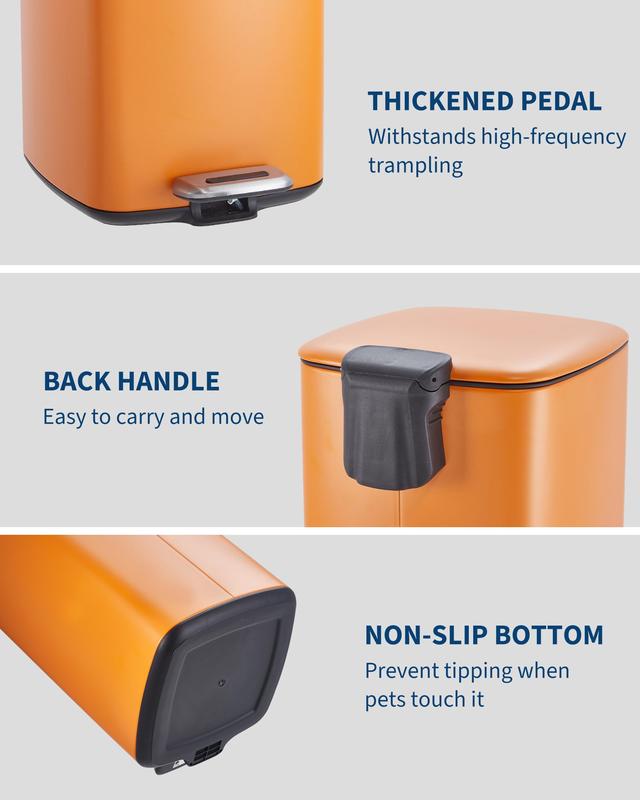 · Easy-Clean Removable Inner Bucket: The lightweight, detachable plastic inner bucket makes disposal and cleaning straightforward. Simply lift it out to empty trash or wipe the interior, ensuring effortless maintenance
