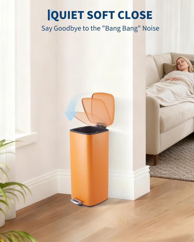 · 8 Gallon (30L) Space-Saving Square Design: Sleek square profile fits seamlessly into kitchen, office, or bathroom corners, maximizing floor space while offering ample capacity to handle daily waste without frequent emptying.