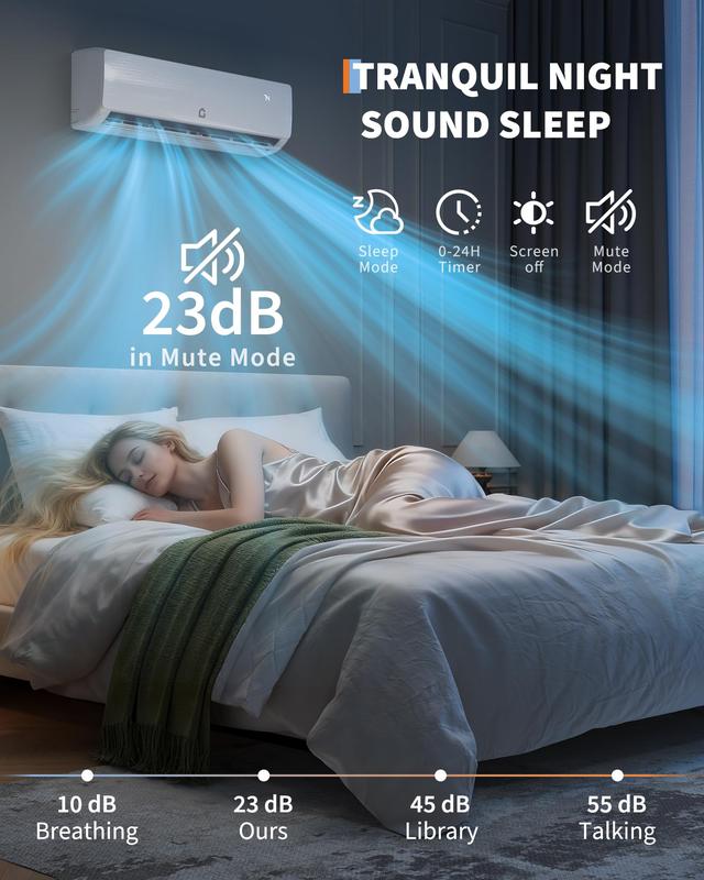 · [Year-Round 4-in-1 Comfort] – Garvee’s ultra-compact mini-split blasts out 9,000 BTU of rapid cooling in just 30 seconds and 9,000 BTU of turbo-heating in 60 seconds, perfectly conditioning spaces up to 450 sq ft within a 60–90 °F comfort range. Seamlessly switch between Cooling, Heating, Dry, and Fan-Only modes with 4-way swing for uniform air distribution