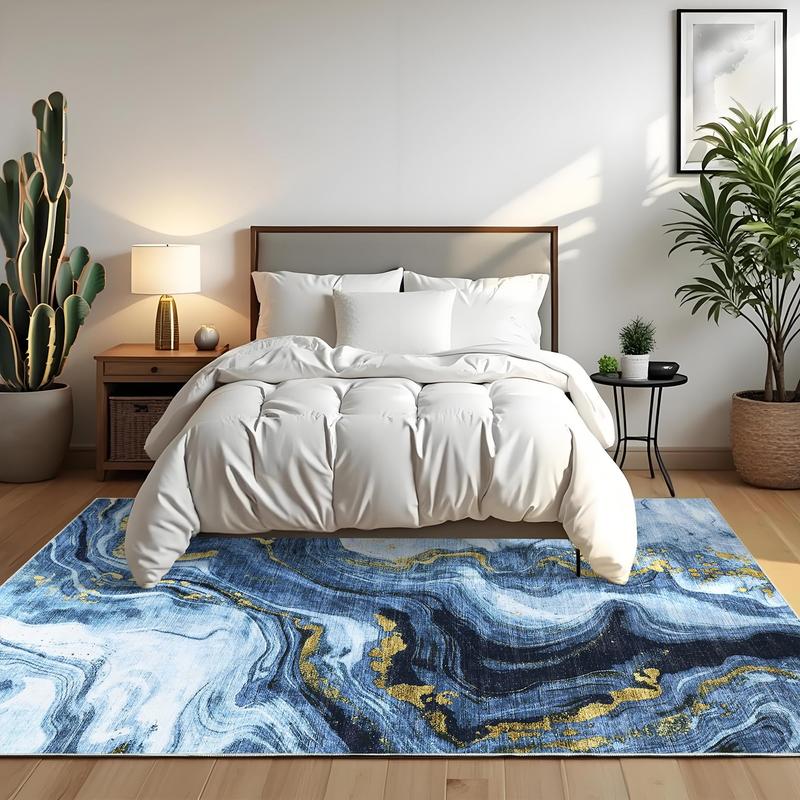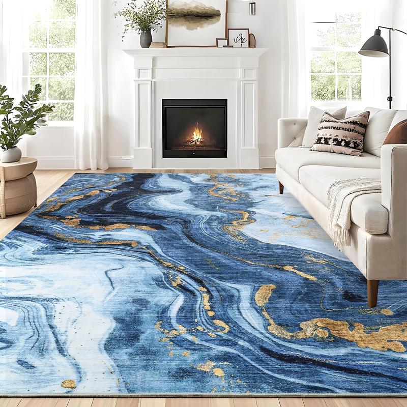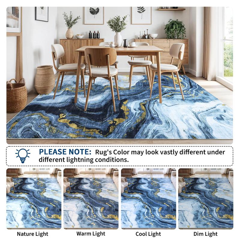 · 【Unique Design Abstract Rug】-Our area rug features chic wavy marble patterns and abstract print style,giving you a stunning visual experience. Classic stylish design is neutral and generous on rug appearance, which can be integrated into any existing home décor. Our abstract aesthetic rug is perfect as living room rug, bedroom rug, hallway rug, kitchen rug, dining room rug or home office rug.Brings a delicacy and timeless with a beautiful lived-in design to your home!