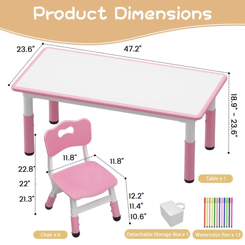 With its height-adjustable design, easy-to-clean surface, and integrated storage solutions, the GARVEE Kids Table and 6 Chairs Set combines smart design with endless possibilities for fun and learning.