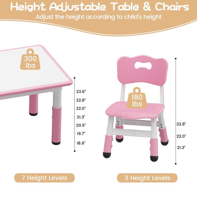 With its adjustable height, graffiti-friendly surface, and ergonomic chairs, this set combines functionality with fun. The pink color adds a touch of vibrancy to any room, making it an attractive centerpiece for learning and play.