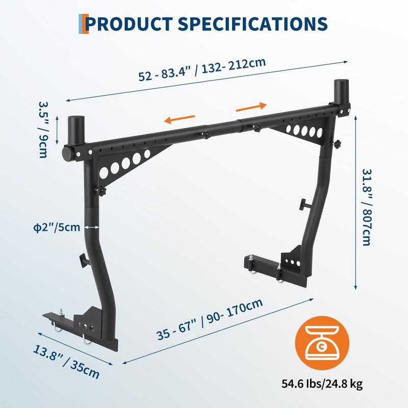 · 【Universal Fit for Full-Size Pickup Trucks】 This adjustable truck ladder rack fits most full-size pickup trucks, including F150, Silverado 1500, and RAM 1500. The width adjusts from 35" to 67" and the crossbar extends 52" to 82", making it a perfect contractor truck rack for everyday hauling. Not compatible with toolboxes or tonneau covers.