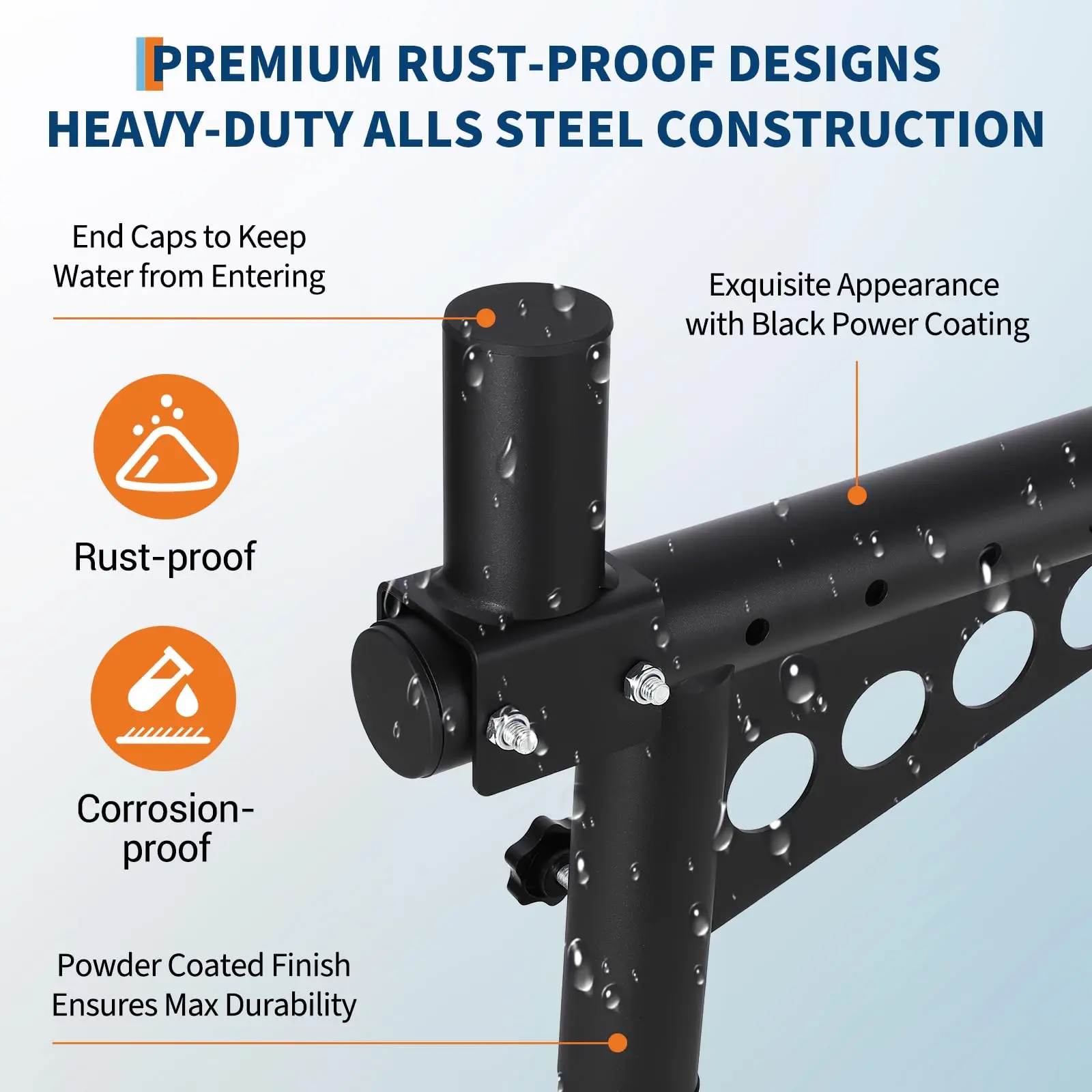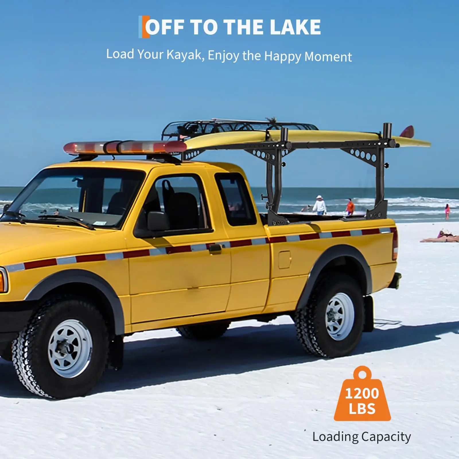 · 【Heavy-Duty Steel Frame – 1000 lbs Capacity】 Built for serious loads, this 1000 lbs capacity ladder rack uses powder-coated alloy steel and a triangular gusset design for enhanced stability. It easily handles jobs as a kayak rack for truck, lumber rack, or surfboard rack, even on bumpy roads or job sites.