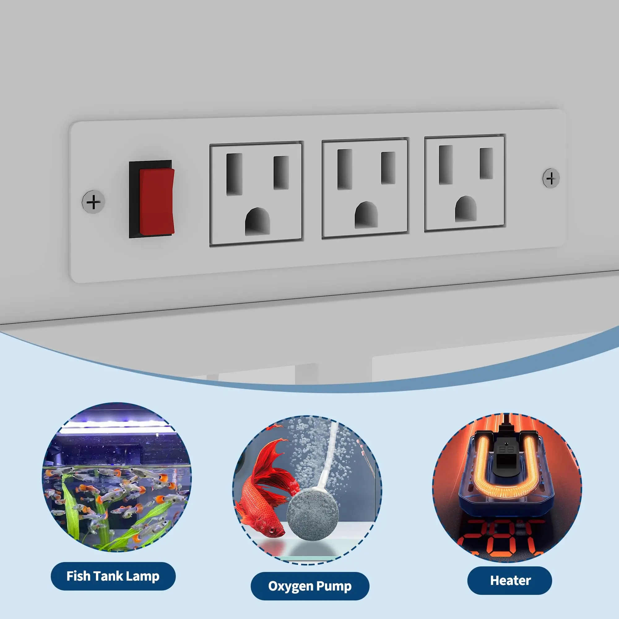 · Fish Tank Stand with Power Outlet: This 40-gallon aquarium stand features 3 integrated AC outlets for conveniently connecting heaters, filters, LED lights, and other equipment, meeting the power needs of all your aquarium and reptile equipment.