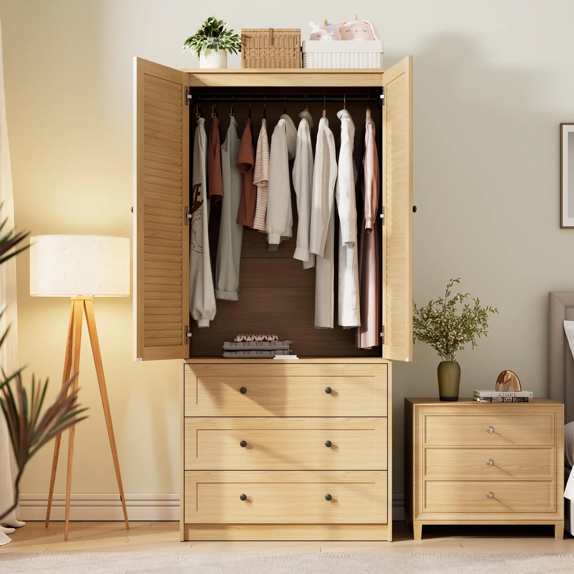 · Wardrobe Closet for Hanging Clothes: Simple and Smart! When all you need is a wardrobe with all the basic functions, why not add a Garvee wooden wardrobe? The clothes rail holds about 20 shirts on hangers. Complete with 3 big drawers to make it easier to keep track of smaller things.