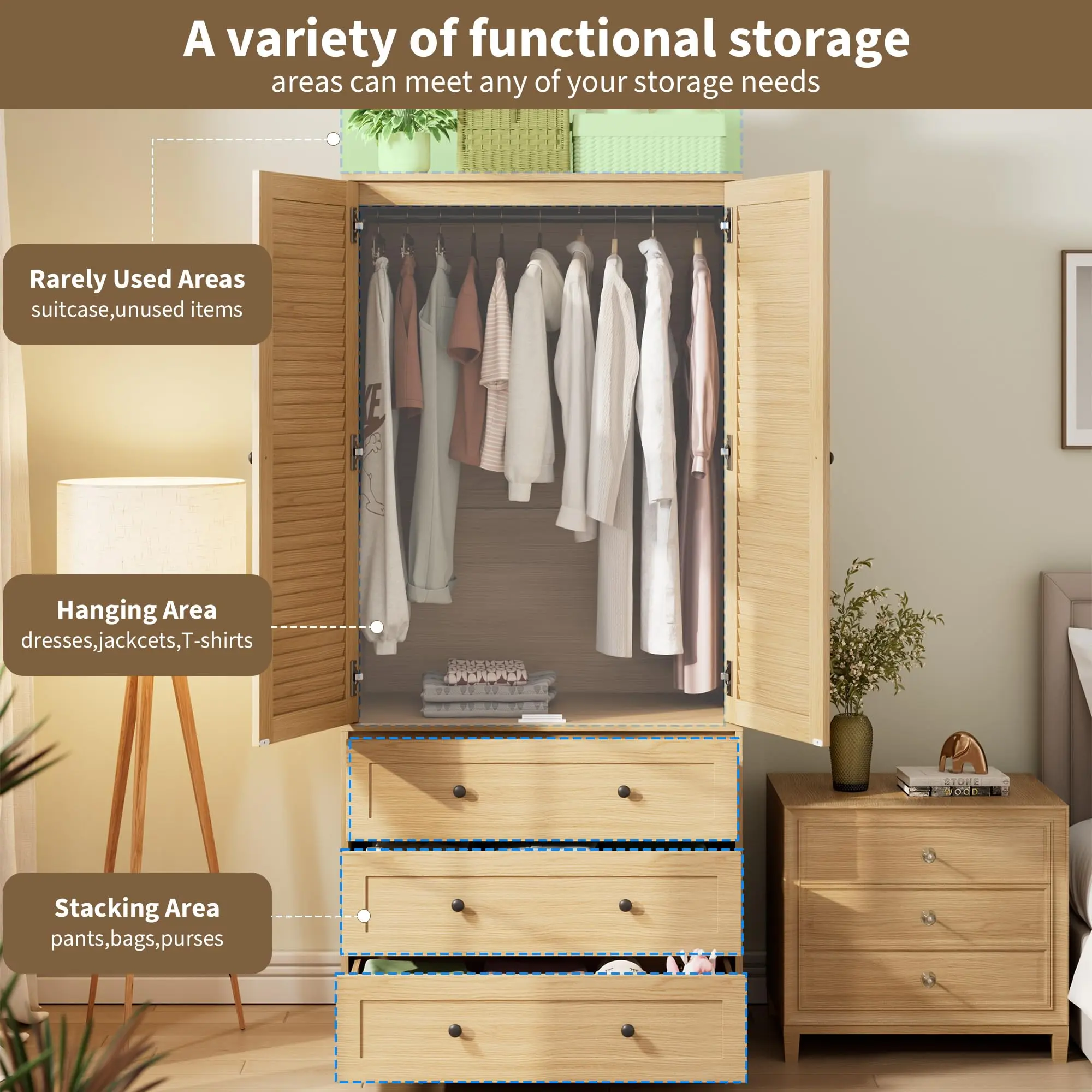 · Wardrobe Closet for Hanging Clothes: Simple and Smart! When all you need is a wardrobe with all the basic functions, why not add a Garvee wooden wardrobe? The clothes rail holds about 20 shirts on hangers. Complete with 3 big drawers to make it easier to keep track of smaller things.