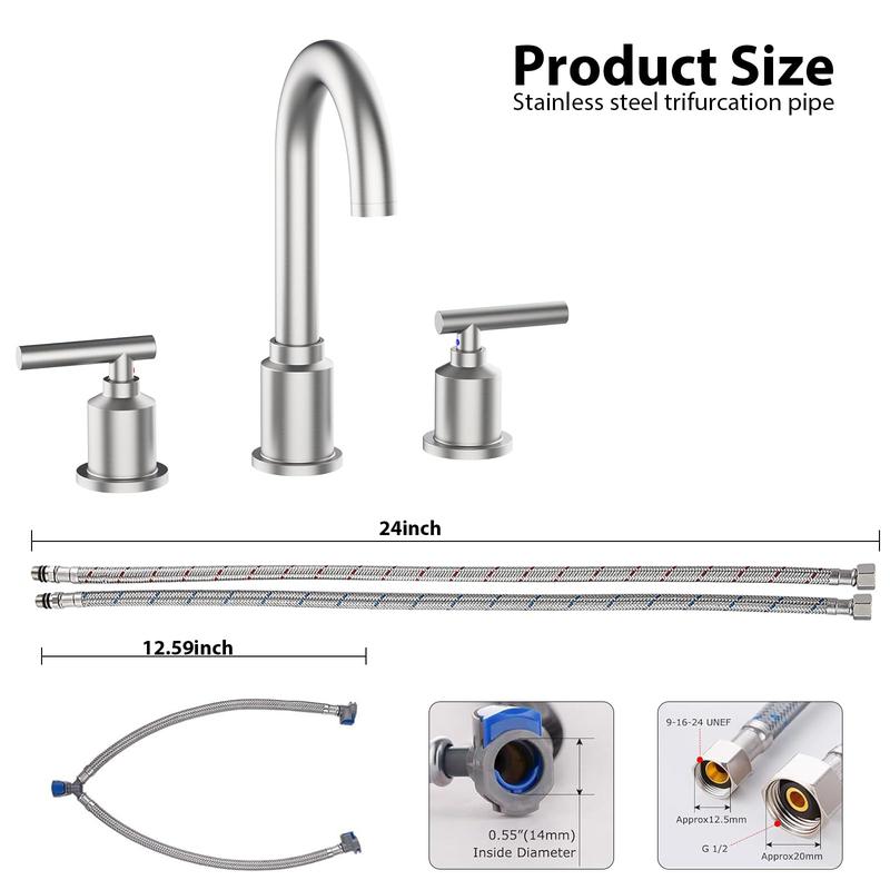 · 【Easy Installation】- Featuring a quick-connect structure and designed for 3-hole mounting with a 6-12 inch spread, this faucet is easy to install by yourself without a plumber, making it a convenient choice for your bathroom renovation.