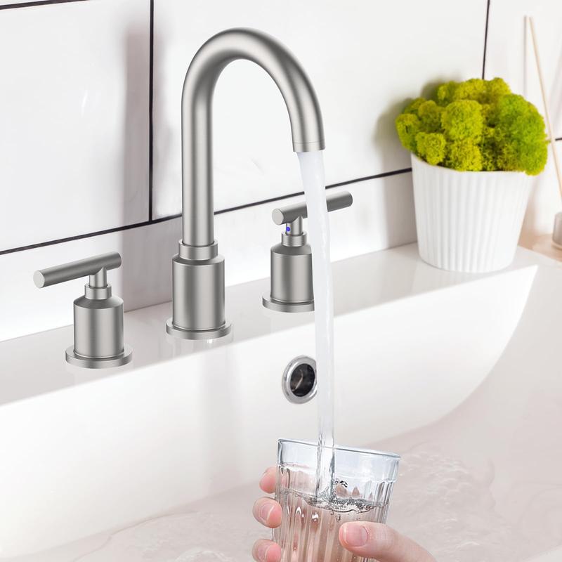 · 【Modern Design】- The widespread bathroom sink faucet offers a modern and stylish look, adding a touch of elegance to your bathroom decor. Gorgeous brushed nickel finish will instantly enhance the appearance of any bathroom sink faucet and complements most decorating styles.
