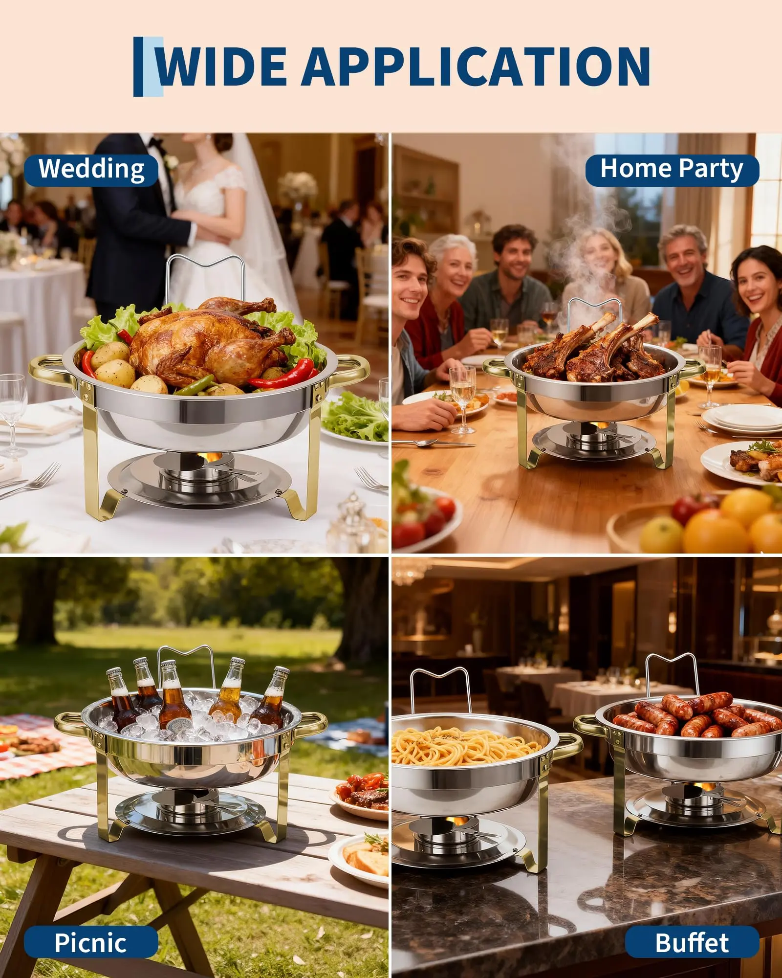 · High-quality stainless steel: made of thick food-grade stainless steel, rust-resistant and easy to clean, ideal for professional catering, weddings, and parties.