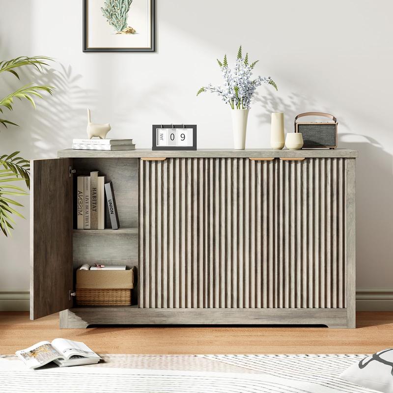 · ✔ Fluted Sideboard Cabinet -Catching Design – Unlike basic cabinets, this piece features artistic wavy doors that elevate your home decor with a modern, upscale vibe.