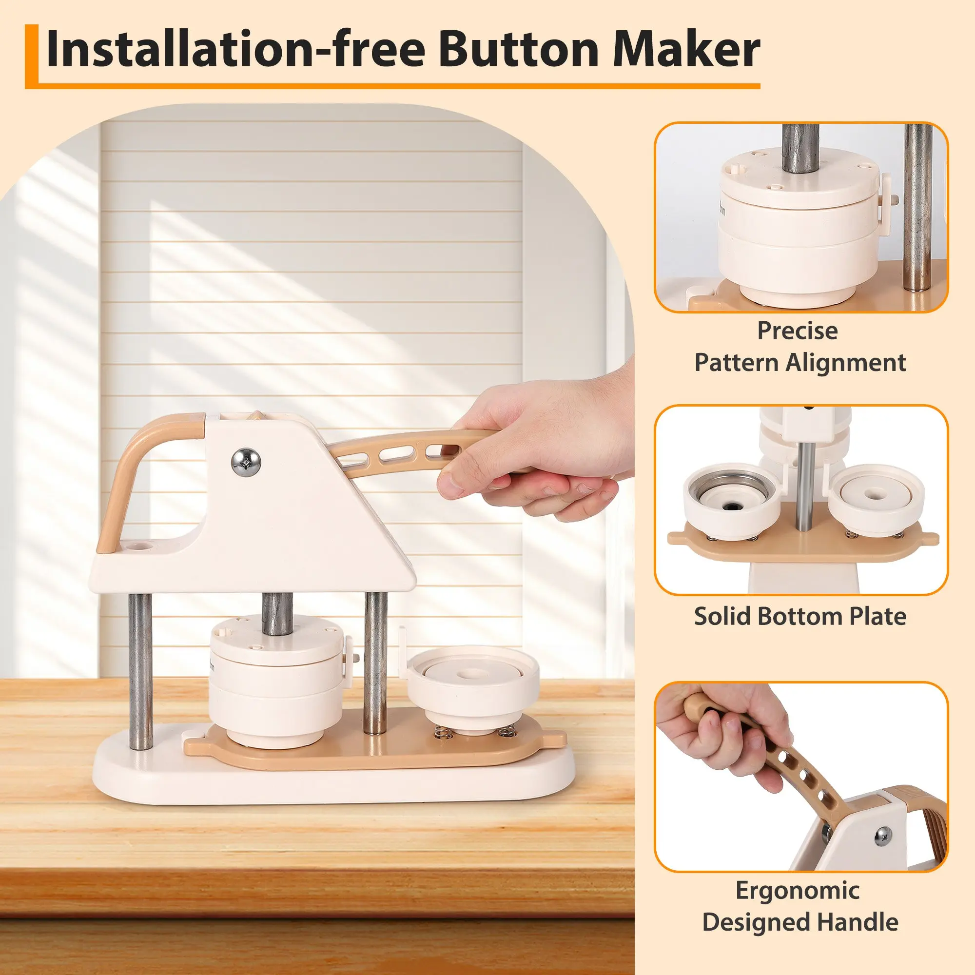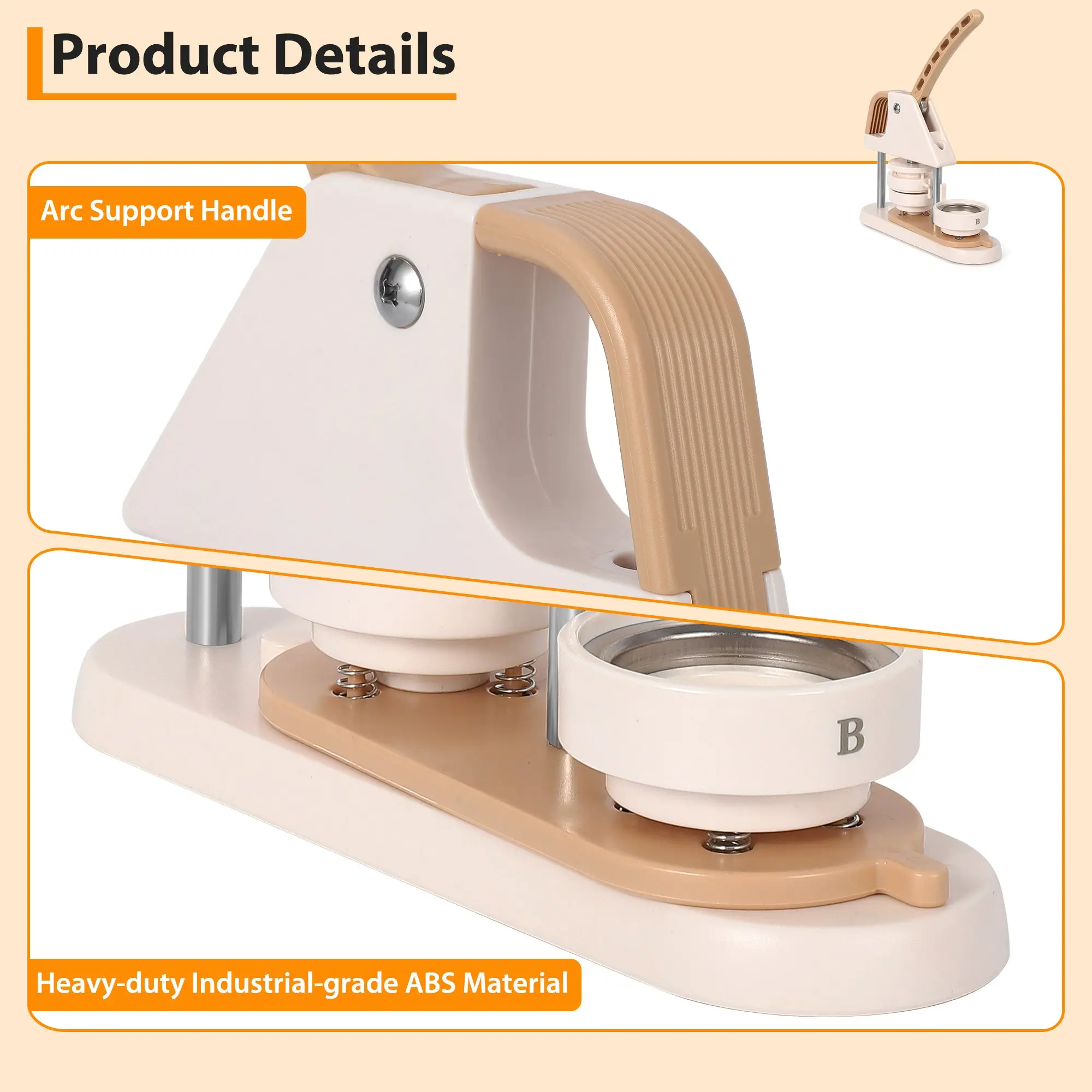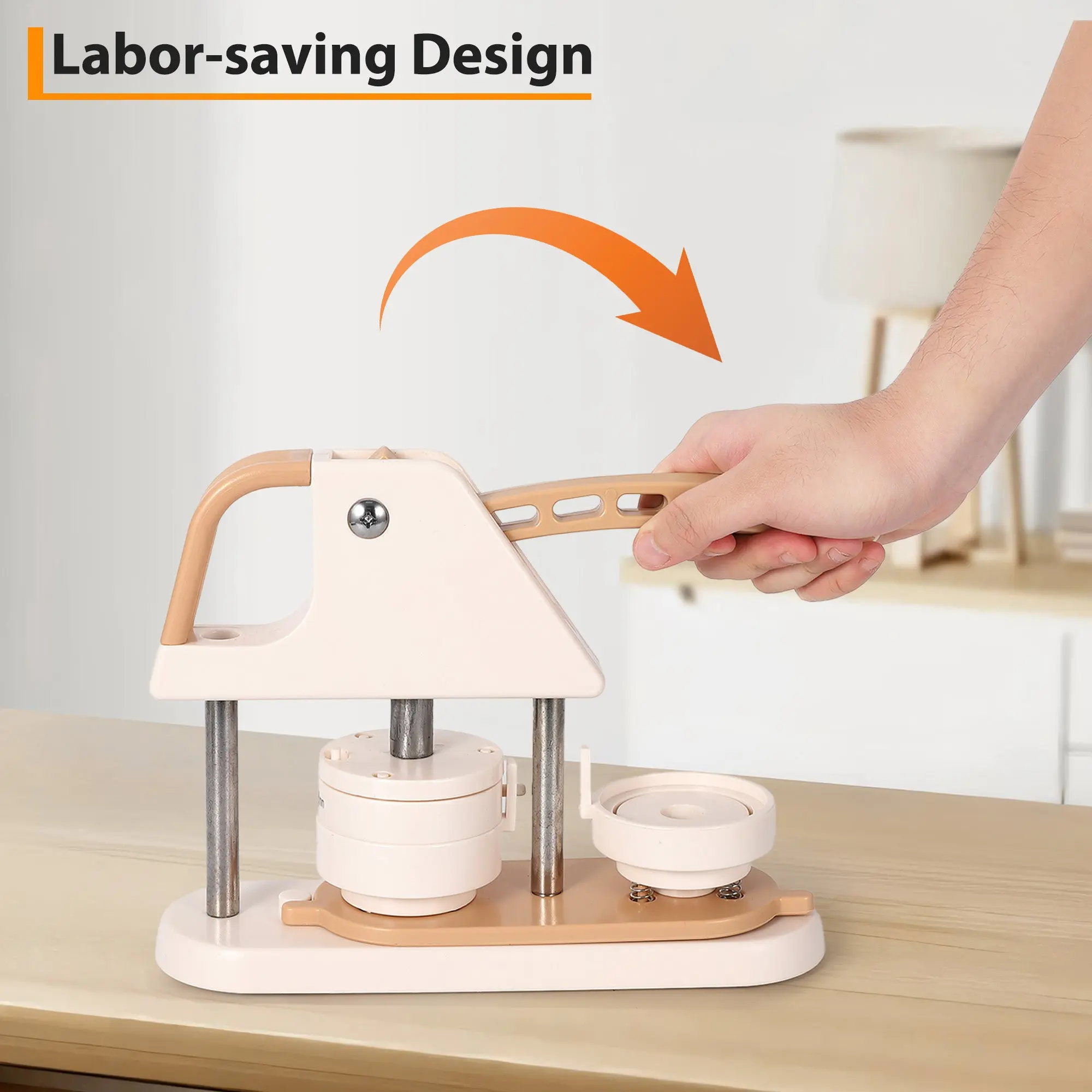 · Unique Professional Design: Made with high strength engineering plastics, this integrated button machine features an ergonomic arc handle for effortless operation. The scientifically designed handle pressure improves stability and success rate.