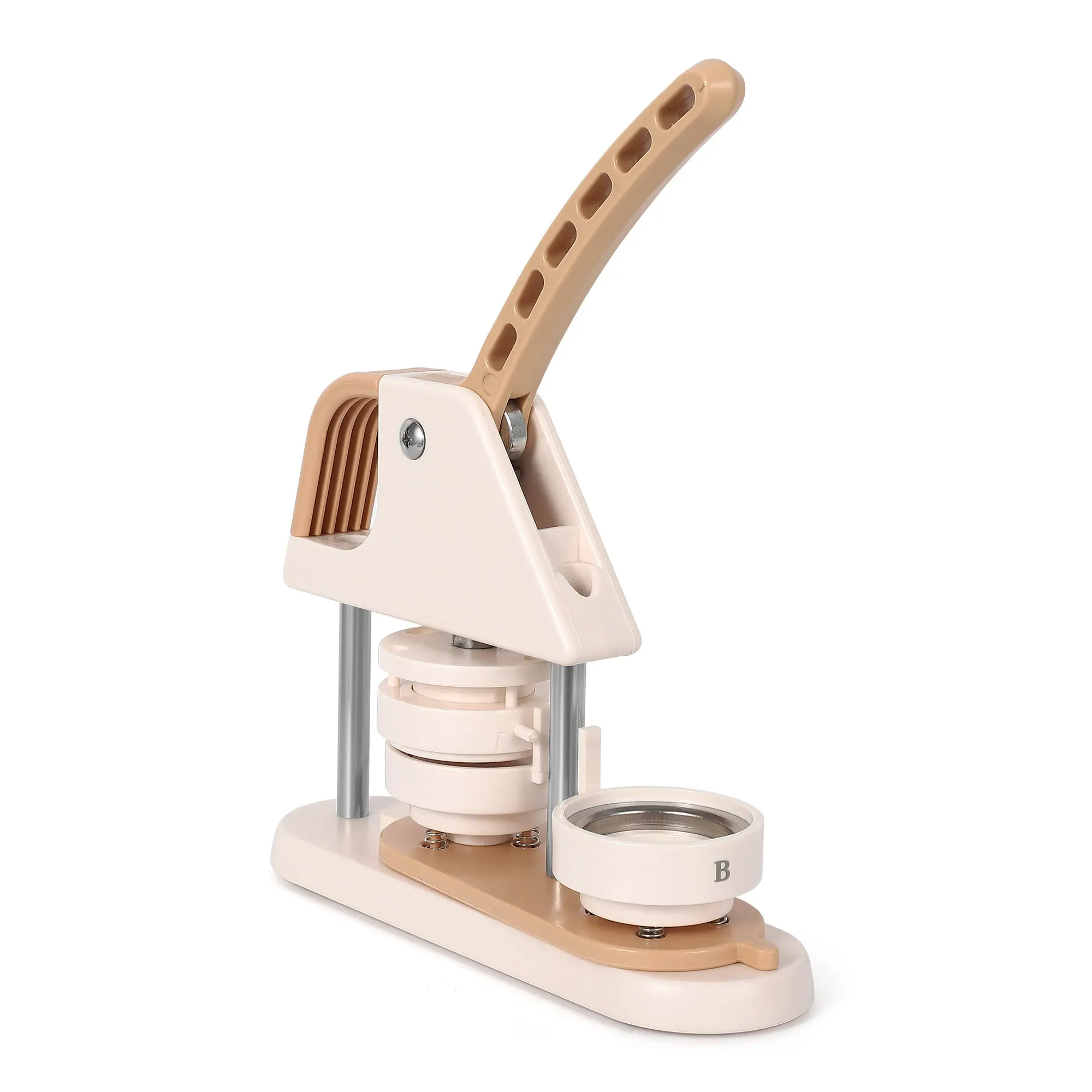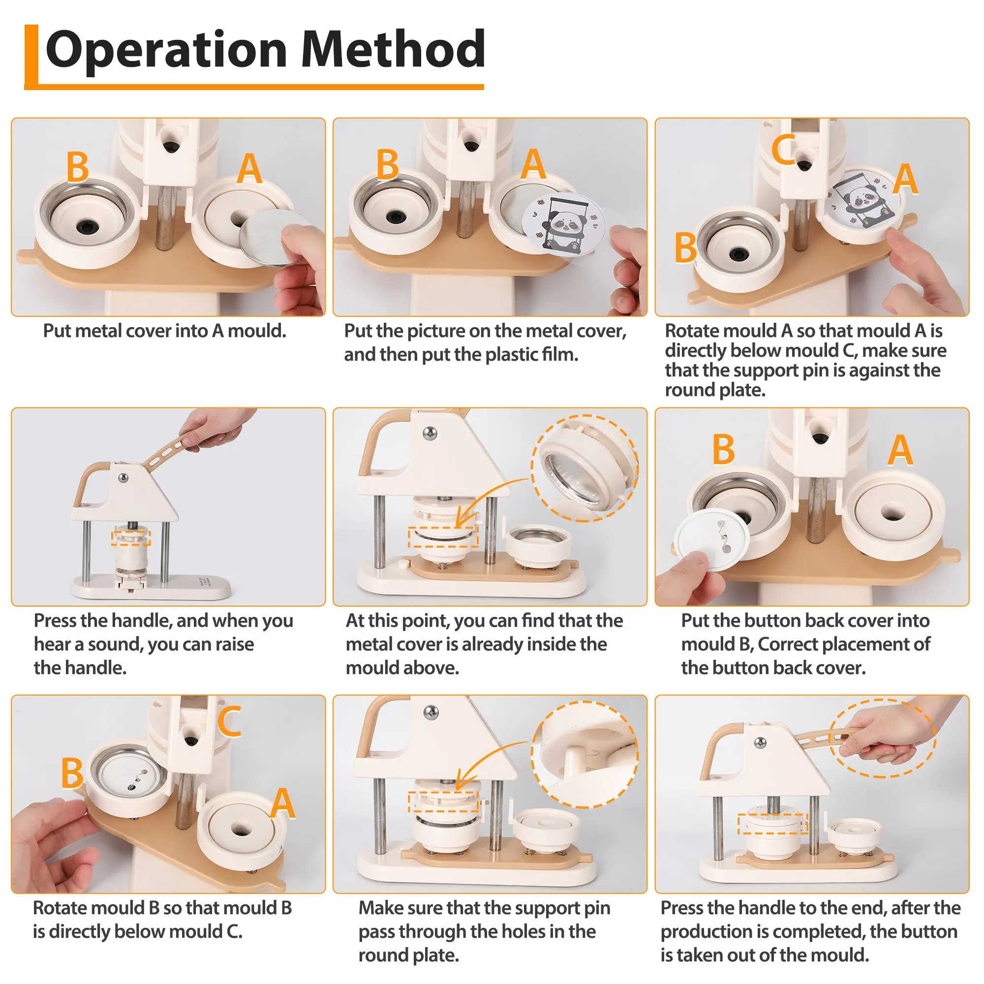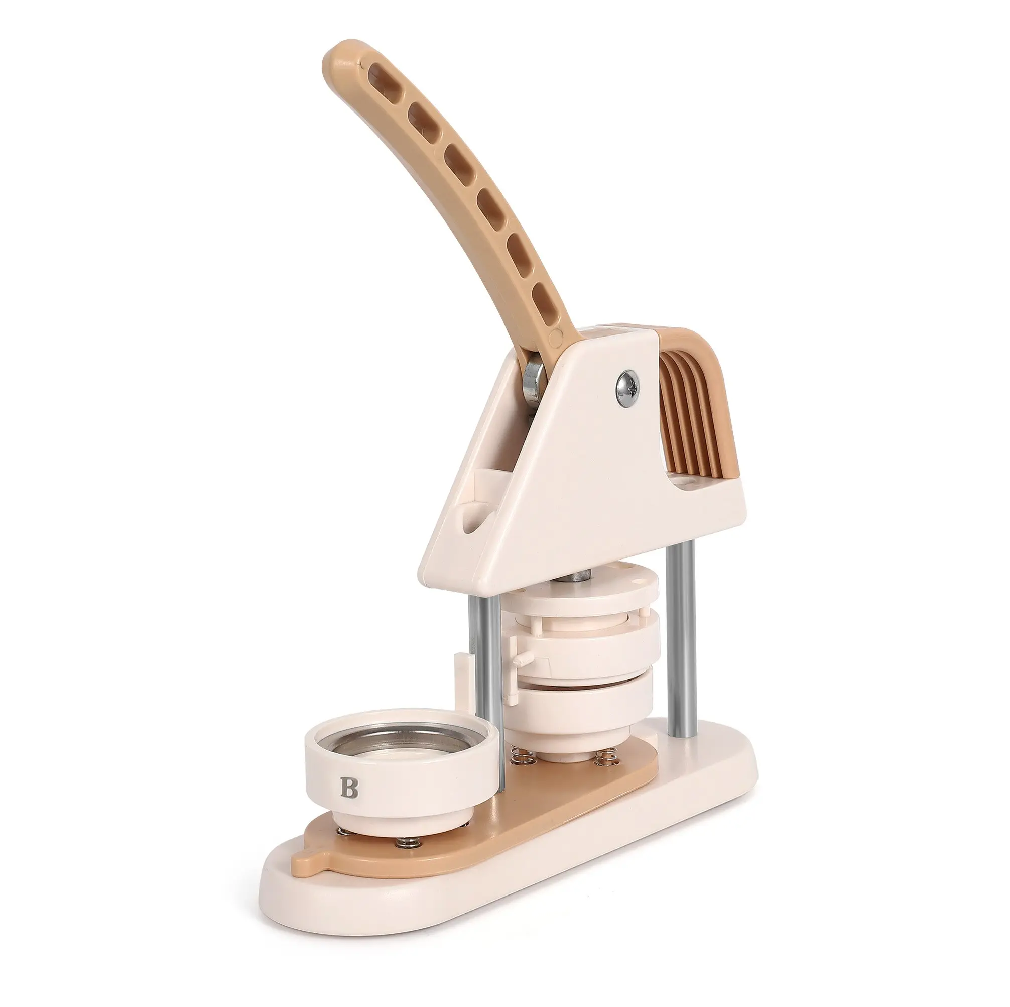 · Unique Professional Design: Made with high strength engineering plastics, this integrated button machine features an ergonomic arc handle for effortless operation. The scientifically designed handle pressure improves stability and success rate.