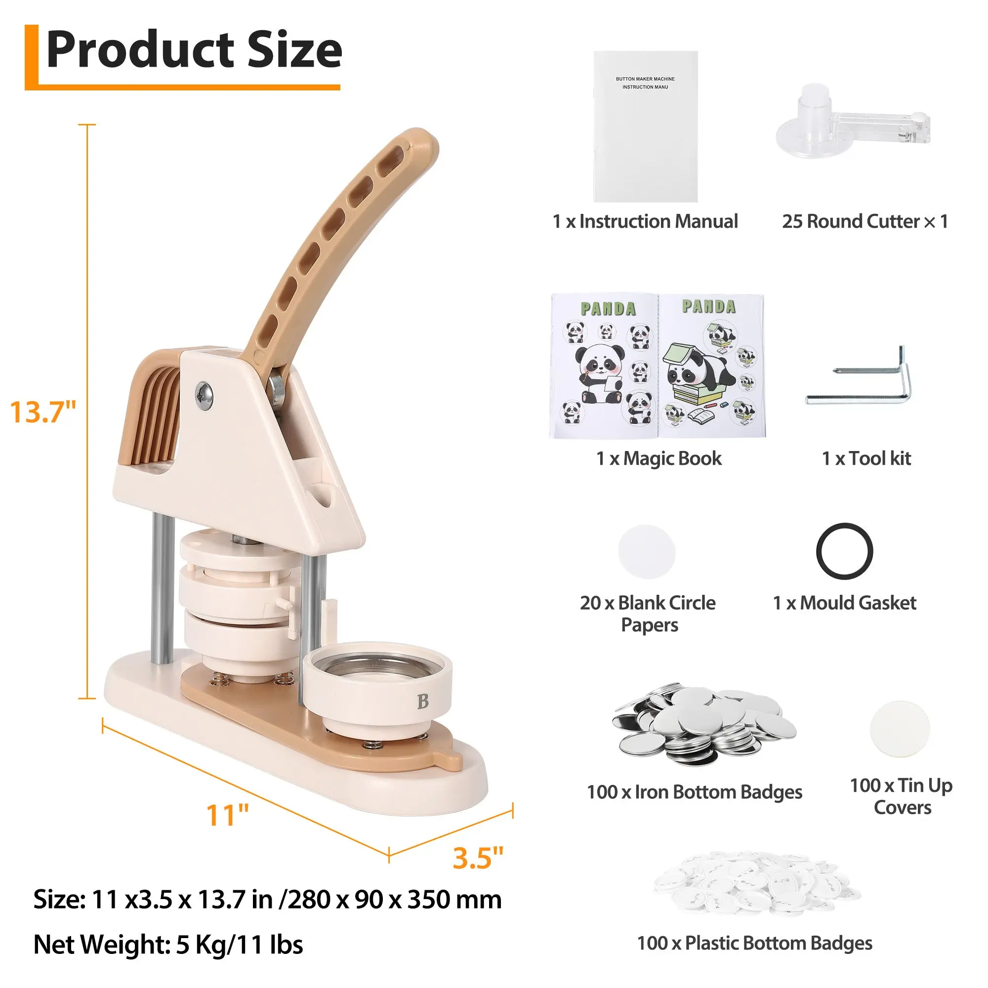 Included Components : Button maker machine, manual