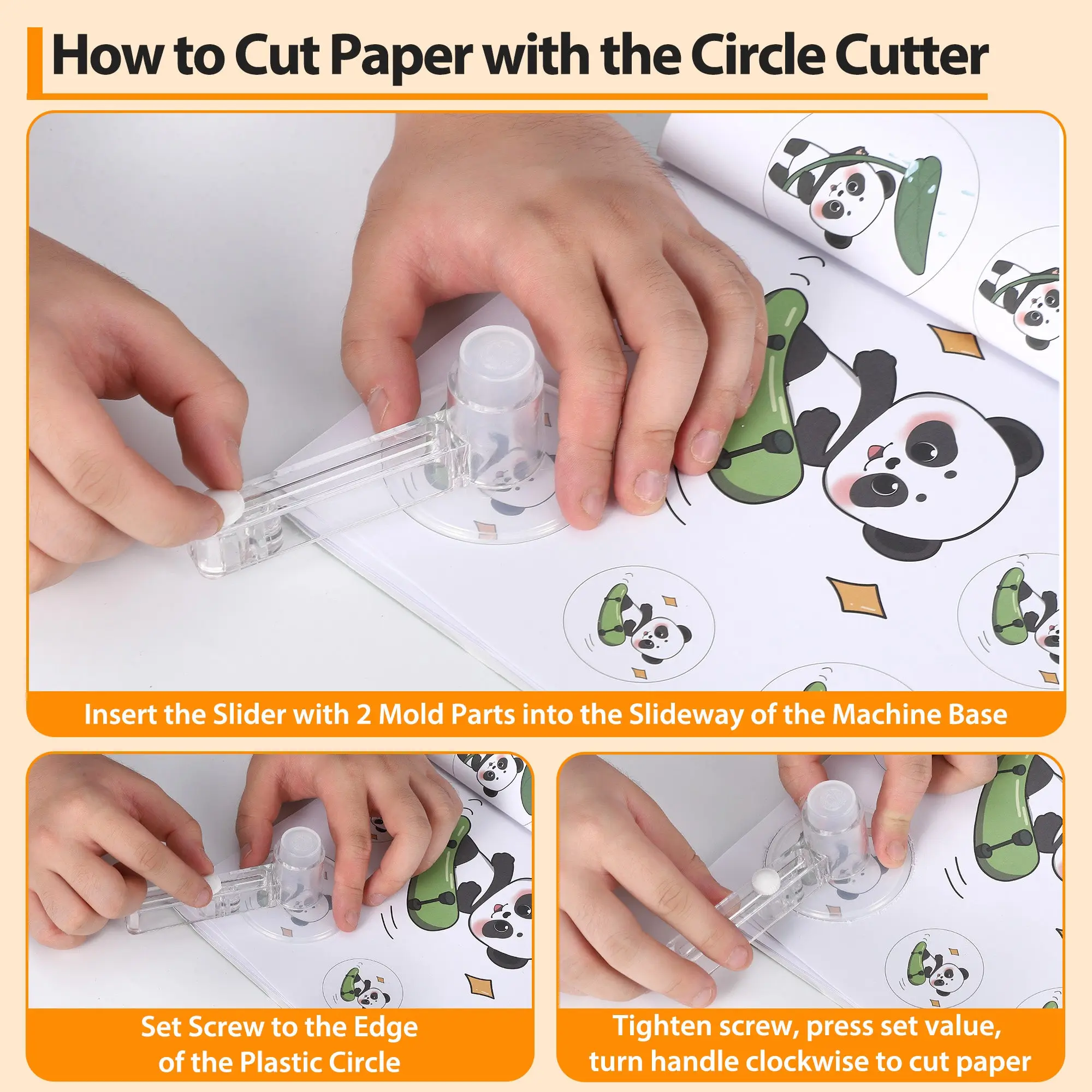 Cut your design to the proper size using the included easy-to-use circle cutter.