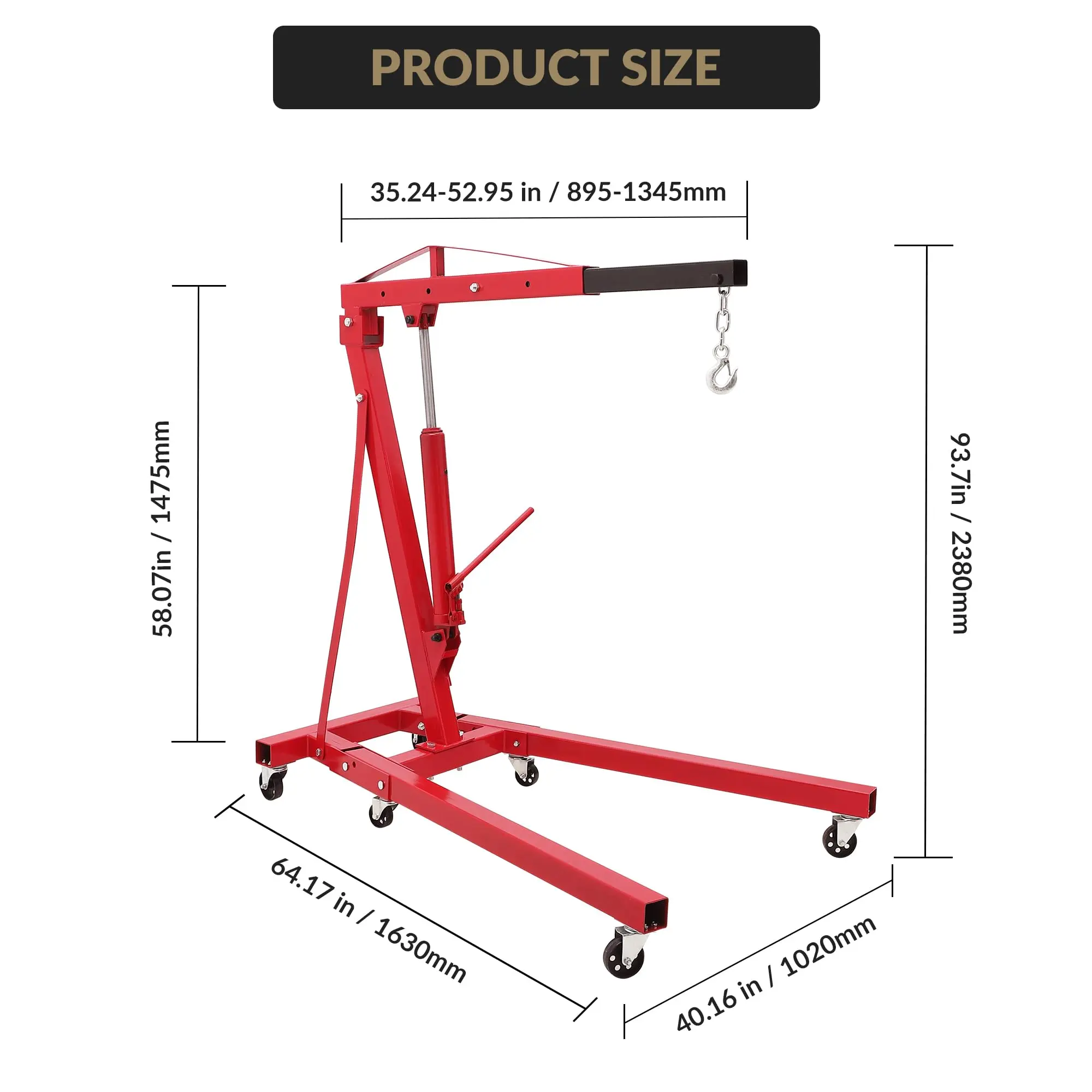 · Foldable Design Saves Storage Space:This engine lift stand’s telescopic boom and bracket fold easily. Compact storage in garages/workshops/warehouses, optimizing space usage.