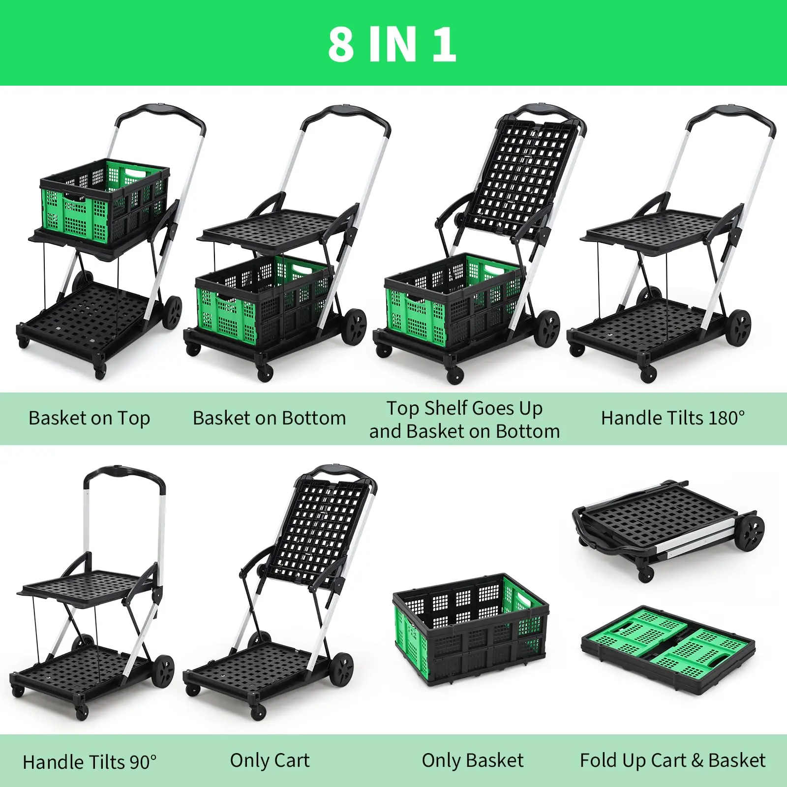 · Versatile Multi-Use Cart for Any Task: This foldable grocery cart with wheels is perfect for shopping, gardening, office use, or warehouse duties. The removable storage crate adds extra convenience, making it the ideal portable shopping cart for indoor and outdoor needs