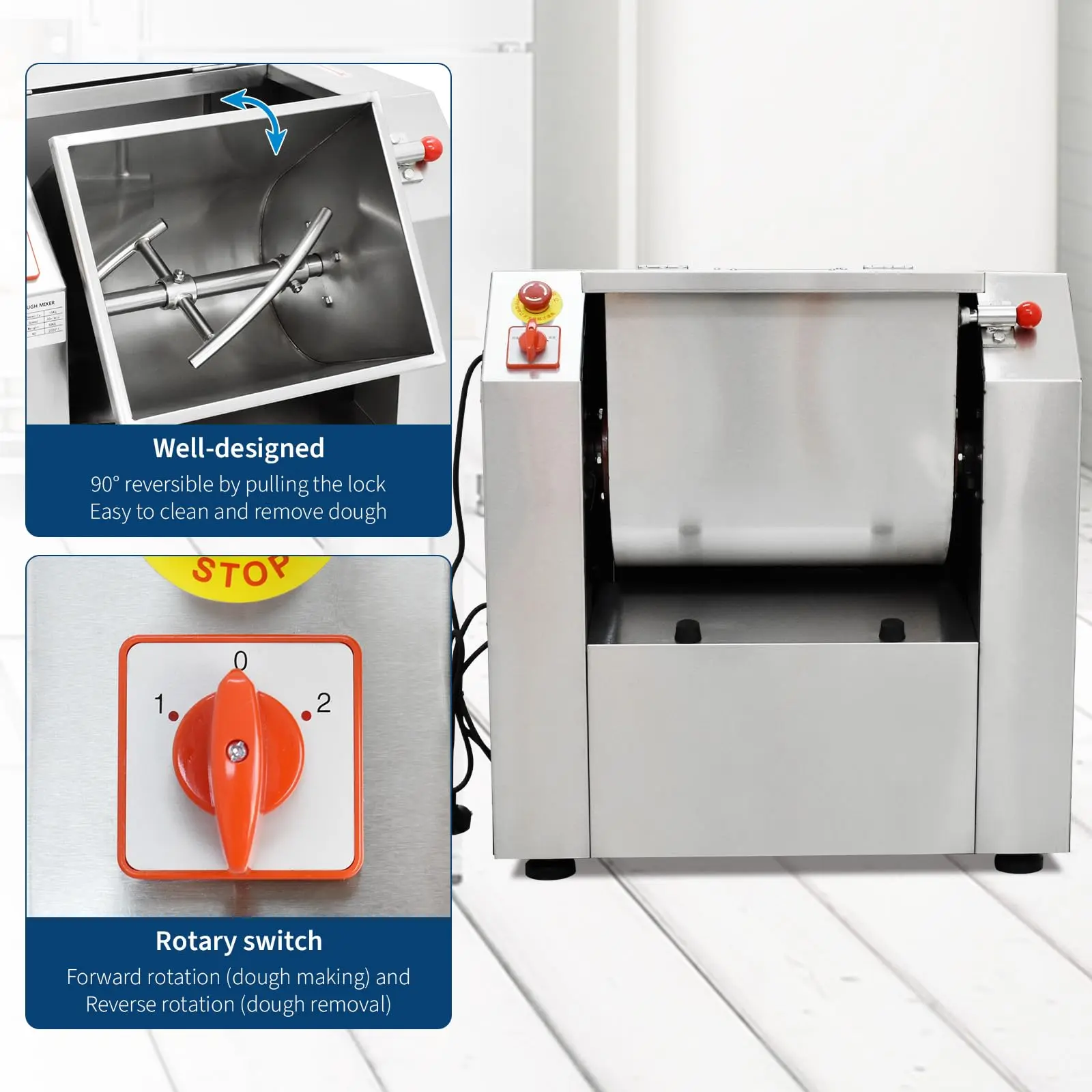 · Versatile Functionality: Ideal for mixing dough, kneading, and sheeting, this commercial dough mixer is a must-have for any serious baker or culinary professional.