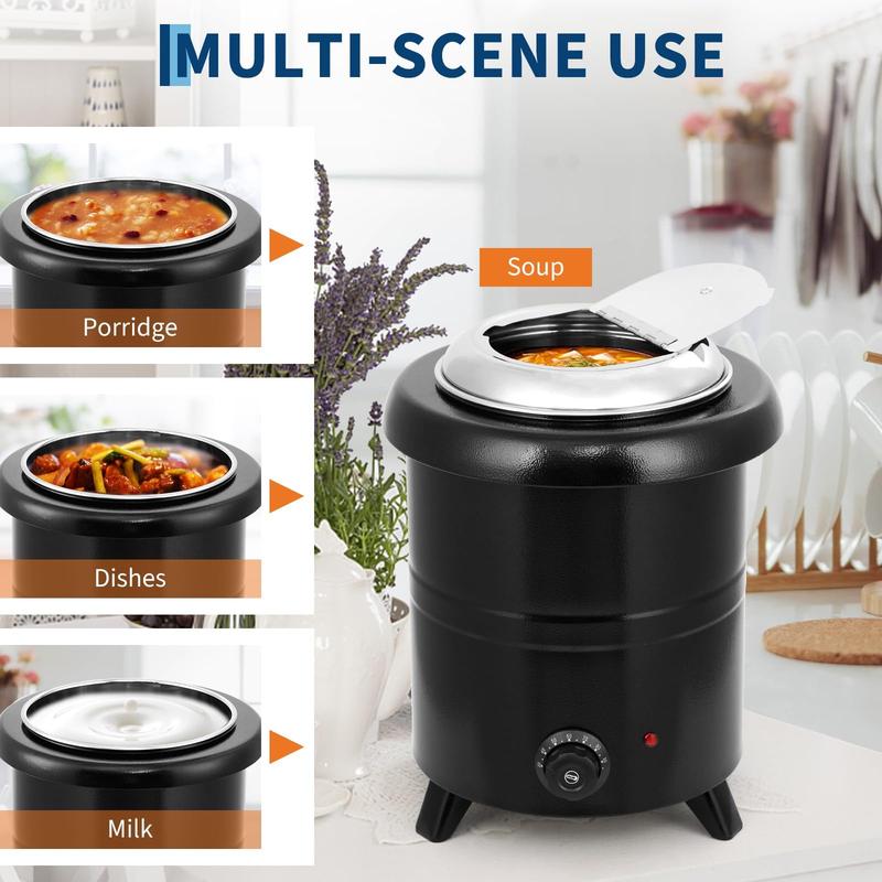 · Commercial-Grade Soup Warmer: Designed for high-volume food service, this electric soup kettle features a spacious 10.5 or 13.7-quart stainless steel interior, ideal for restaurants, buffets, and catering events.