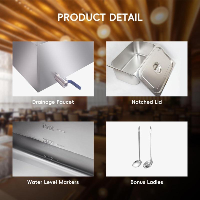 · Large Capacity :Equipped with 6 12-quart compartments, it can keep different dishes warm simultaneously, making it ideal for buffets, catering services, and food service businesses.