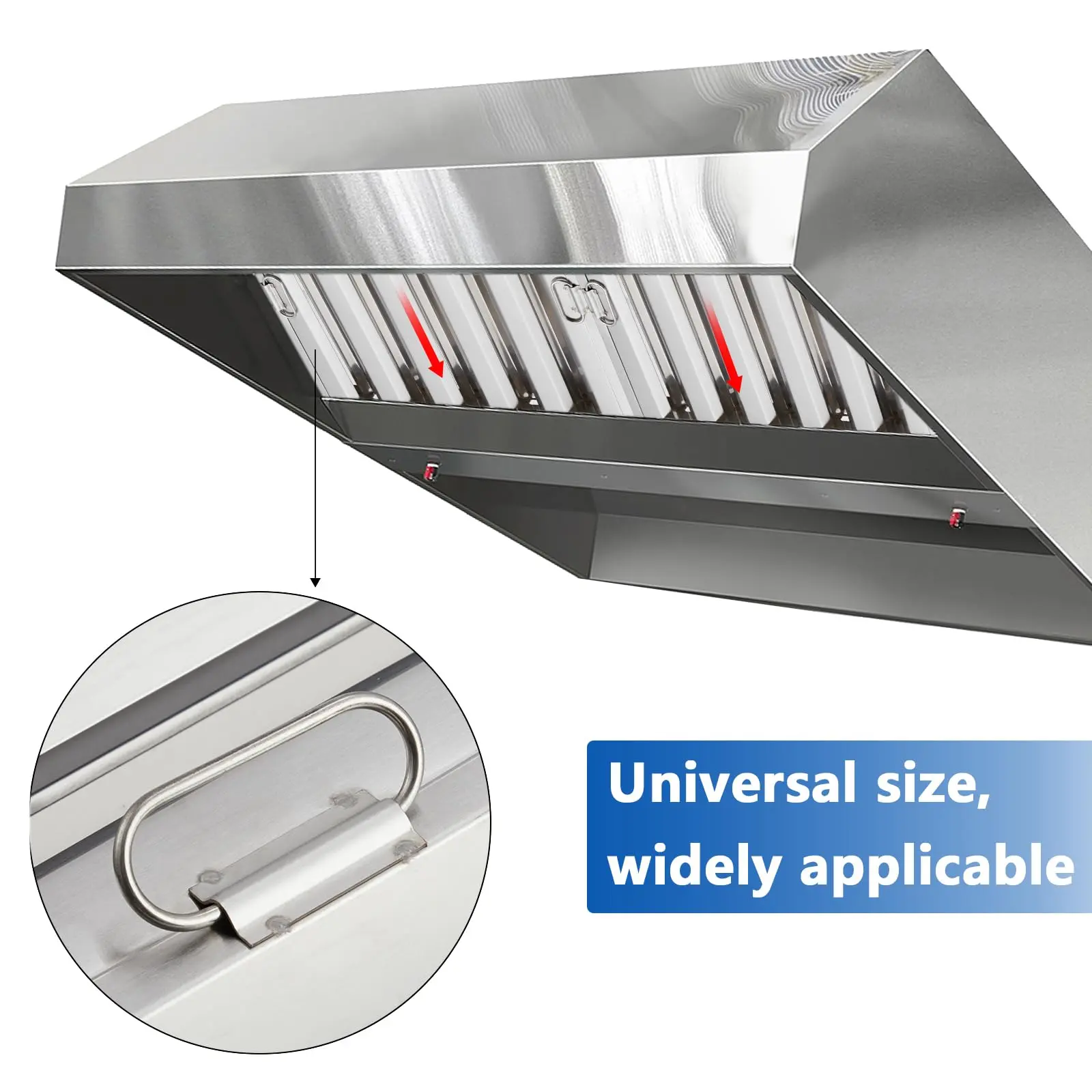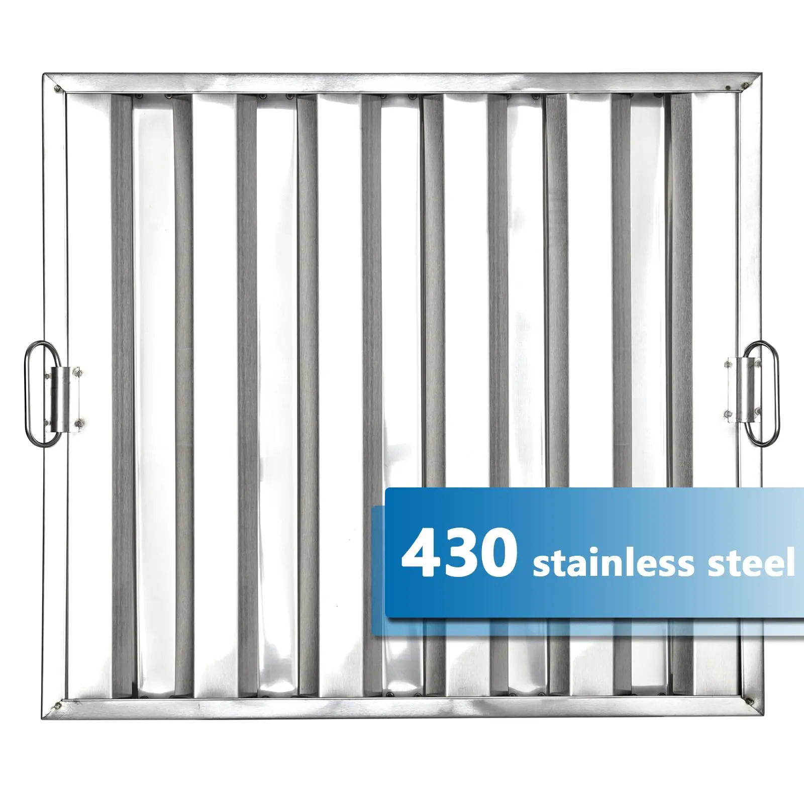 Handles on each side of the filter, this product allows for convenient installation and hassle-free replacement of the grease filter.