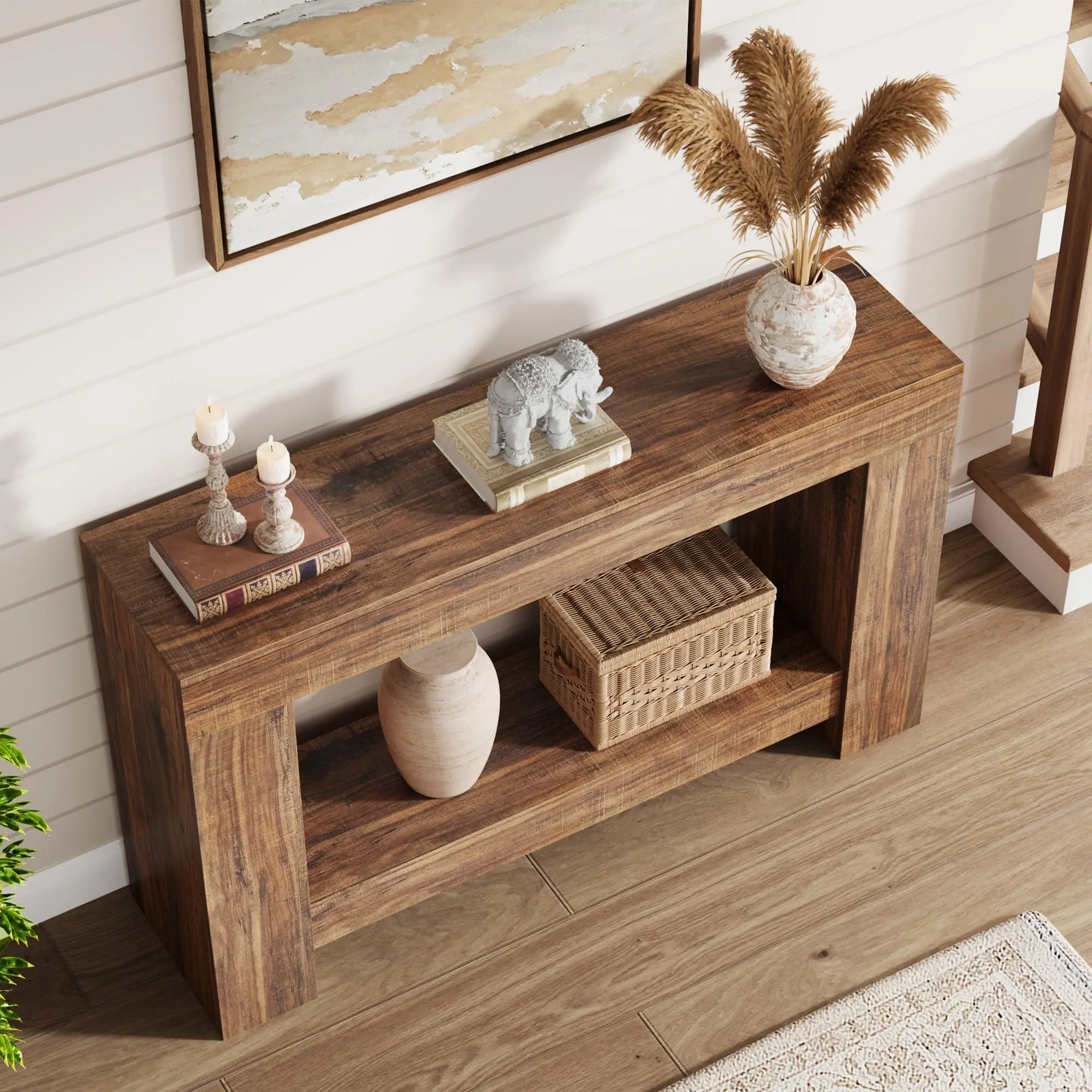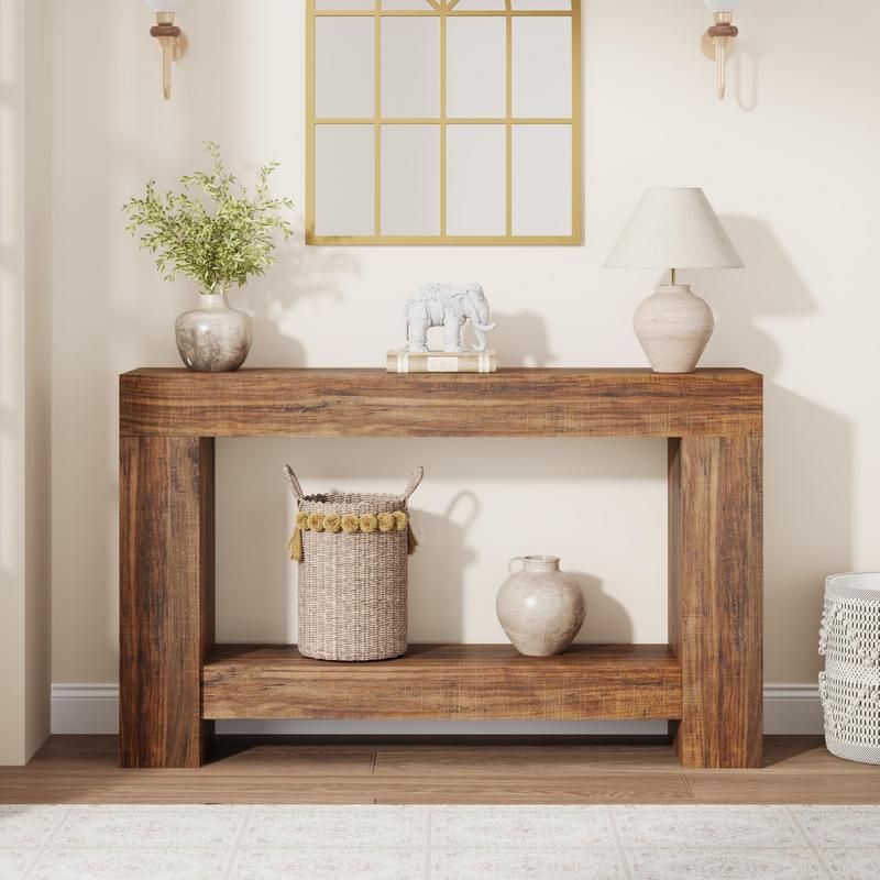 · Farmhouse Console Table: The hallway console table showcases a charm endemic to farmhouse-style decor. This entry table features a unique wood grain texture, enriching your space