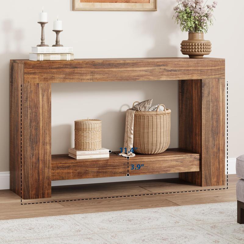 · Ample Storage Space: Our long console table for entryway has a 2-tier design. You can display your daily necessities on a 2-tier large sofa table with storage,, and the shelf at the bottom of the entrance table is an ideal place to store sundries and decorations